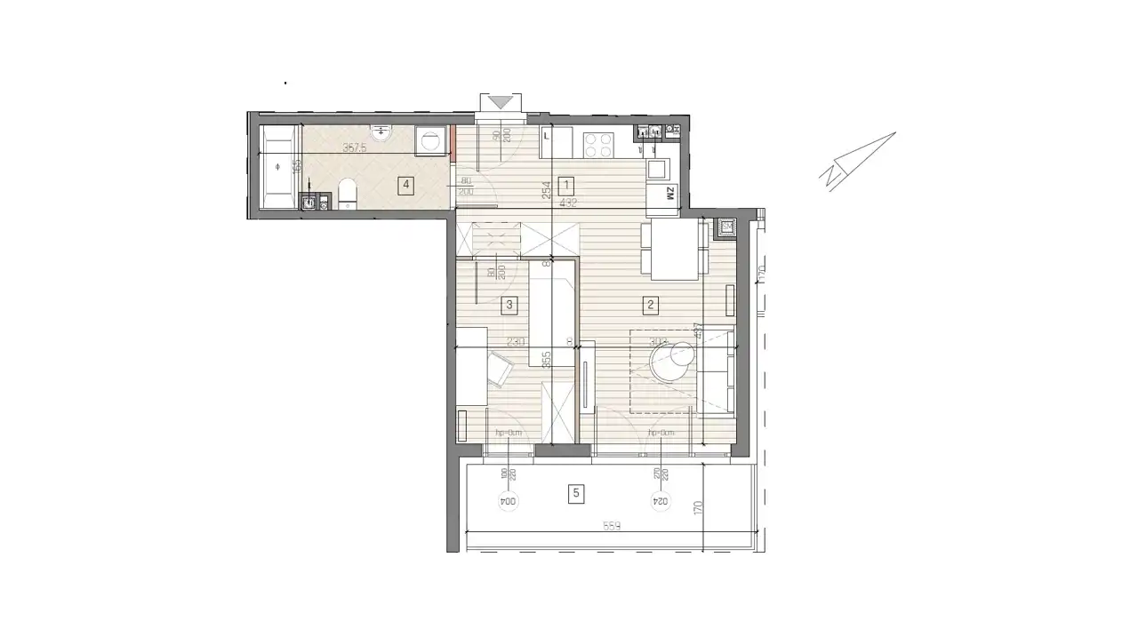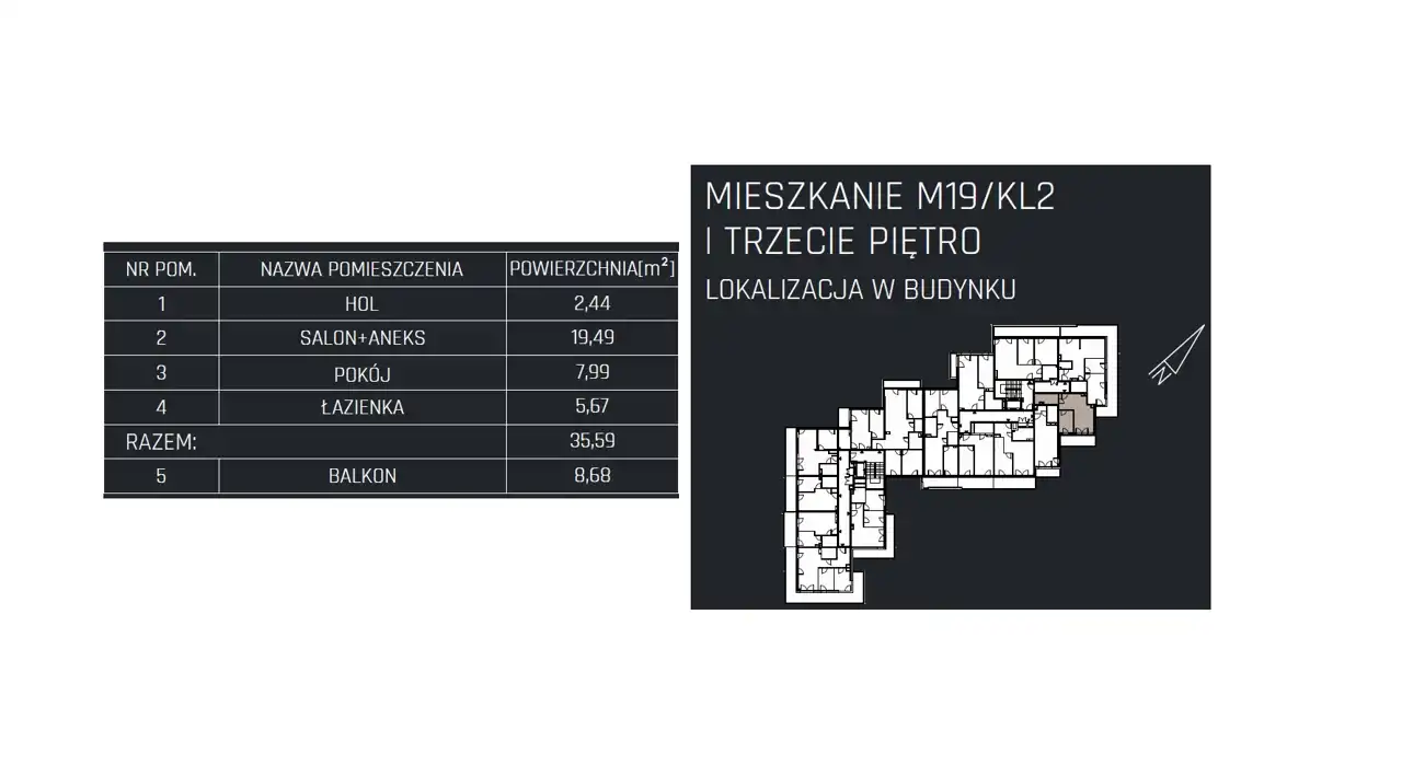 - Charakterystyka mieszkania 35.59 m2, 2 pokoje