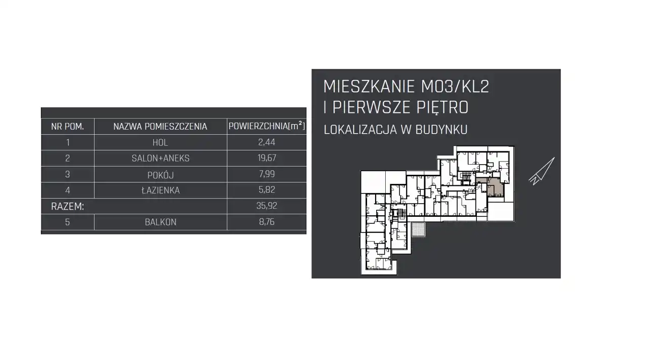 - Charakterystyka mieszkania 35.92 m2, 2 pokoje