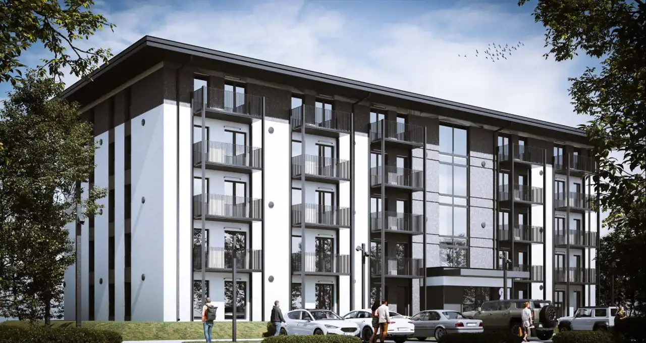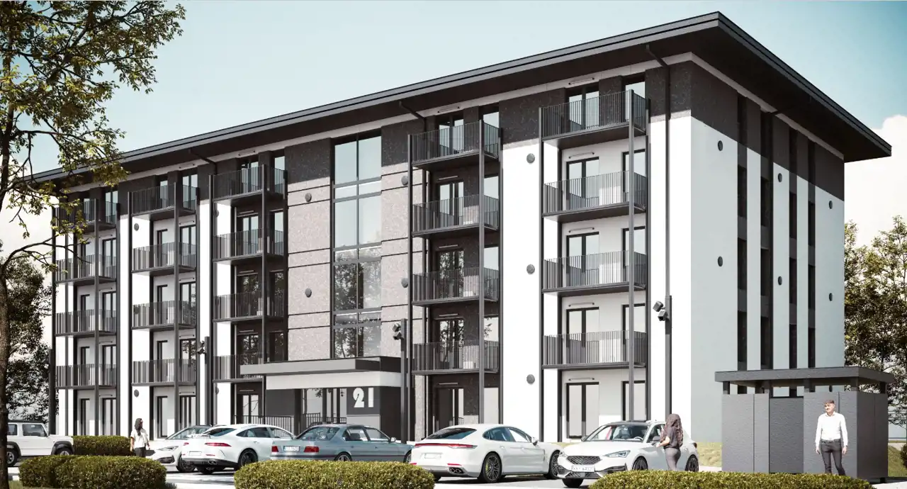 The project includes 55 apartments with areas ranging from 42m² to 49m² situated in a four-story building. The units will be delivered in a high developer standard, equipped with underfloor heating, air conditioning, and a video intercom. Heating will be provided by the municipal network, and hot water will be supplied by a gas boiler supported by photovoltaics. Carefully designed layouts will offer possibilities for flexible interior arrangements. The investment is located in the quiet Zachód district. Nearby, there are numerous service and retail points, as well as a kindergarten. The website address referred to in Article 19a, paragraph 3 of the Act of 20 May 2021 on the protection of the rights of purchasers of residential premises or single-family houses and on the Developer Guarantee Fund is mieszkanialokum(dot)pl. The website address has been written phonetically.