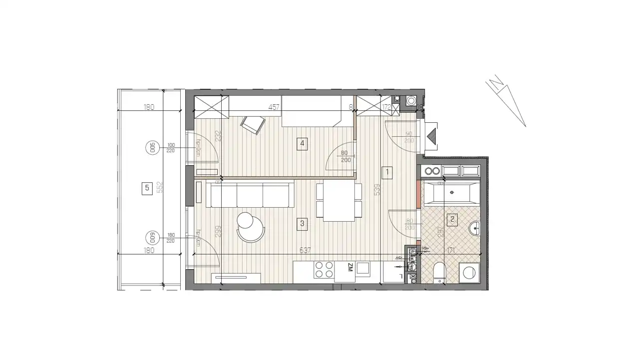- Charakterystyka mieszkania 37.5 m2, 2 pokoje
