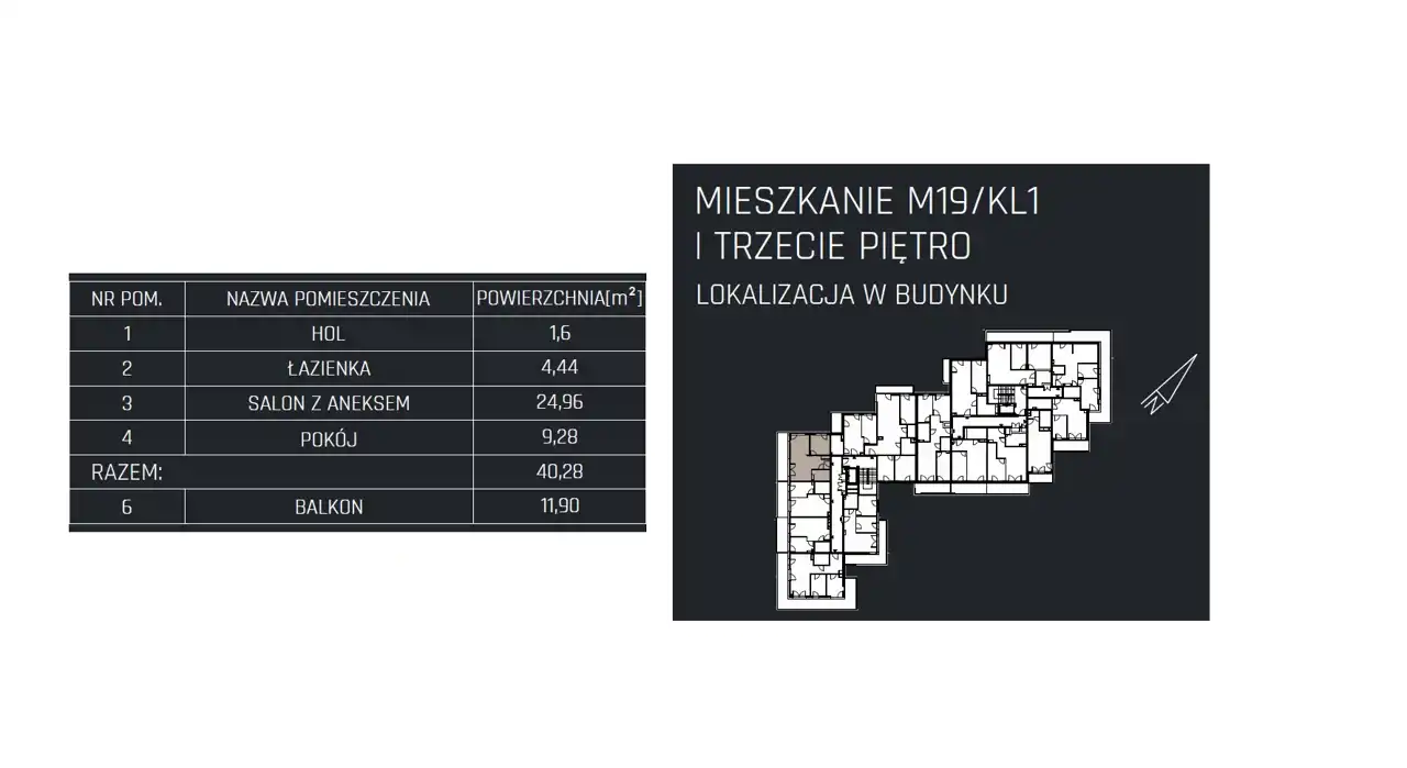 - Charakterystyka mieszkania 40.28 m2, 2 pokoje
