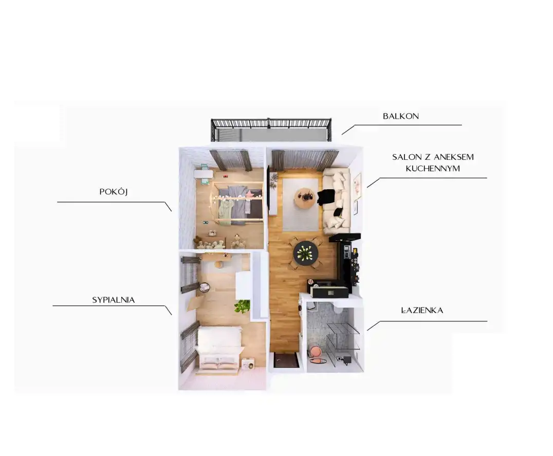 - Charakterystyka mieszkania 49.6 m2, 3 pokoje