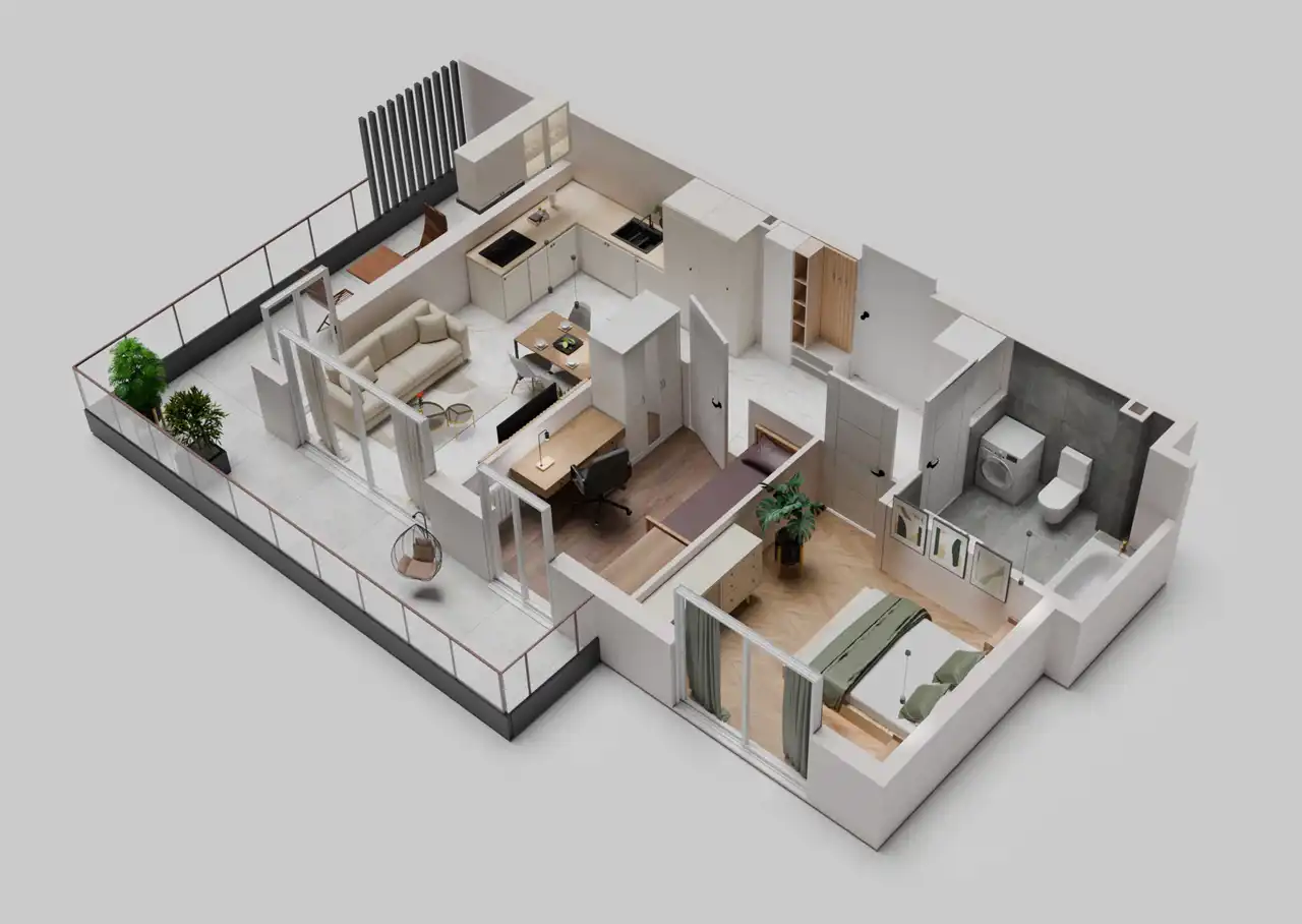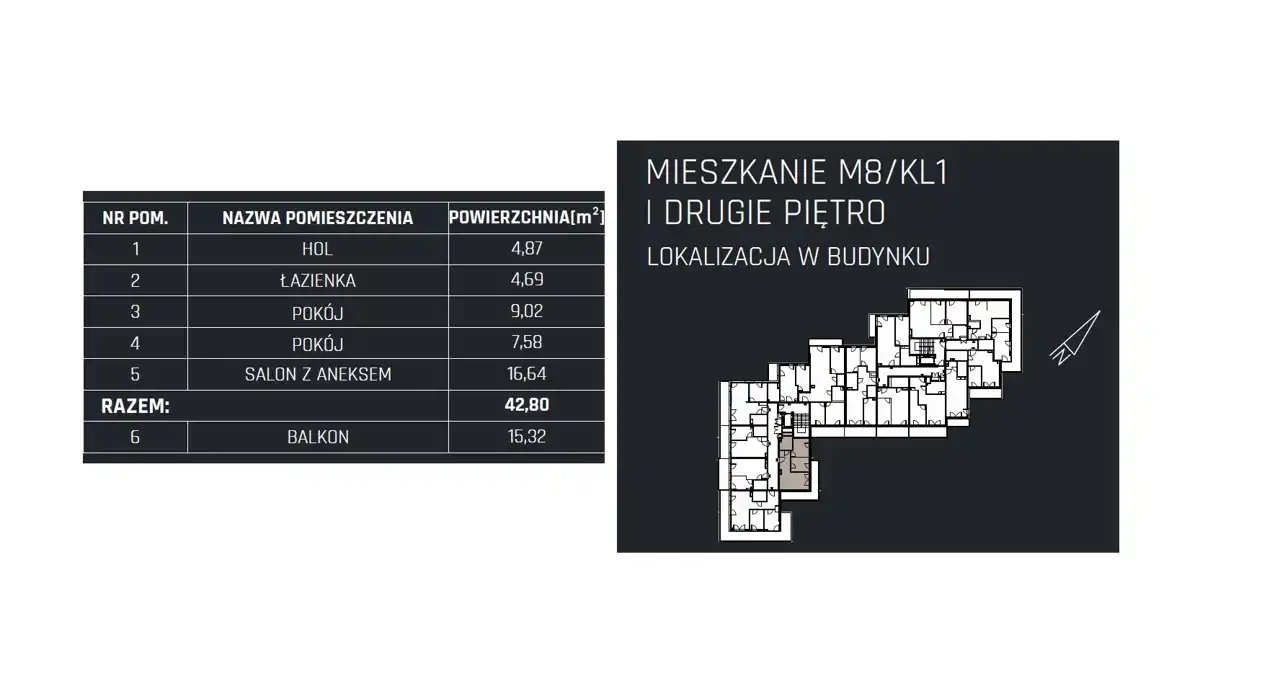- Charakterystyka mieszkania 42.8 m2, 3 pokoje