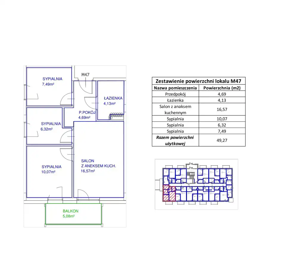 - Charakterystyka mieszkania 49.27 m2, 4 pokoje