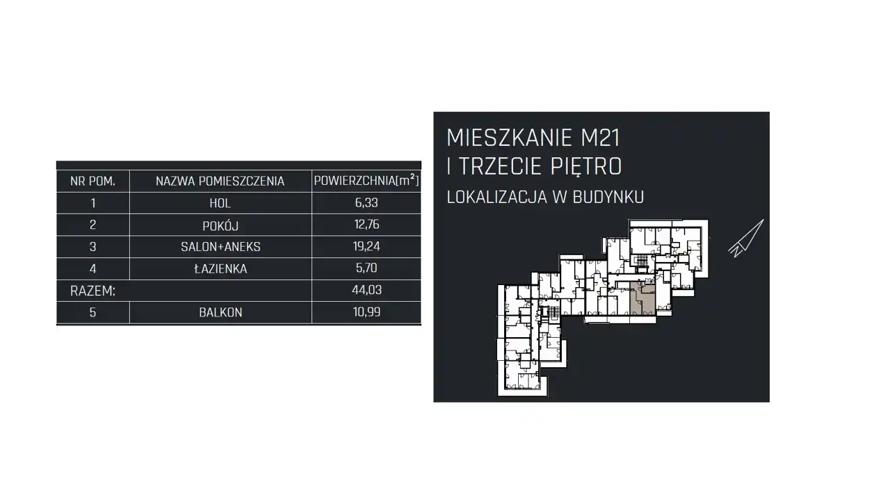 - Charakterystyka mieszkania 44.03 m2, 2 pokoje