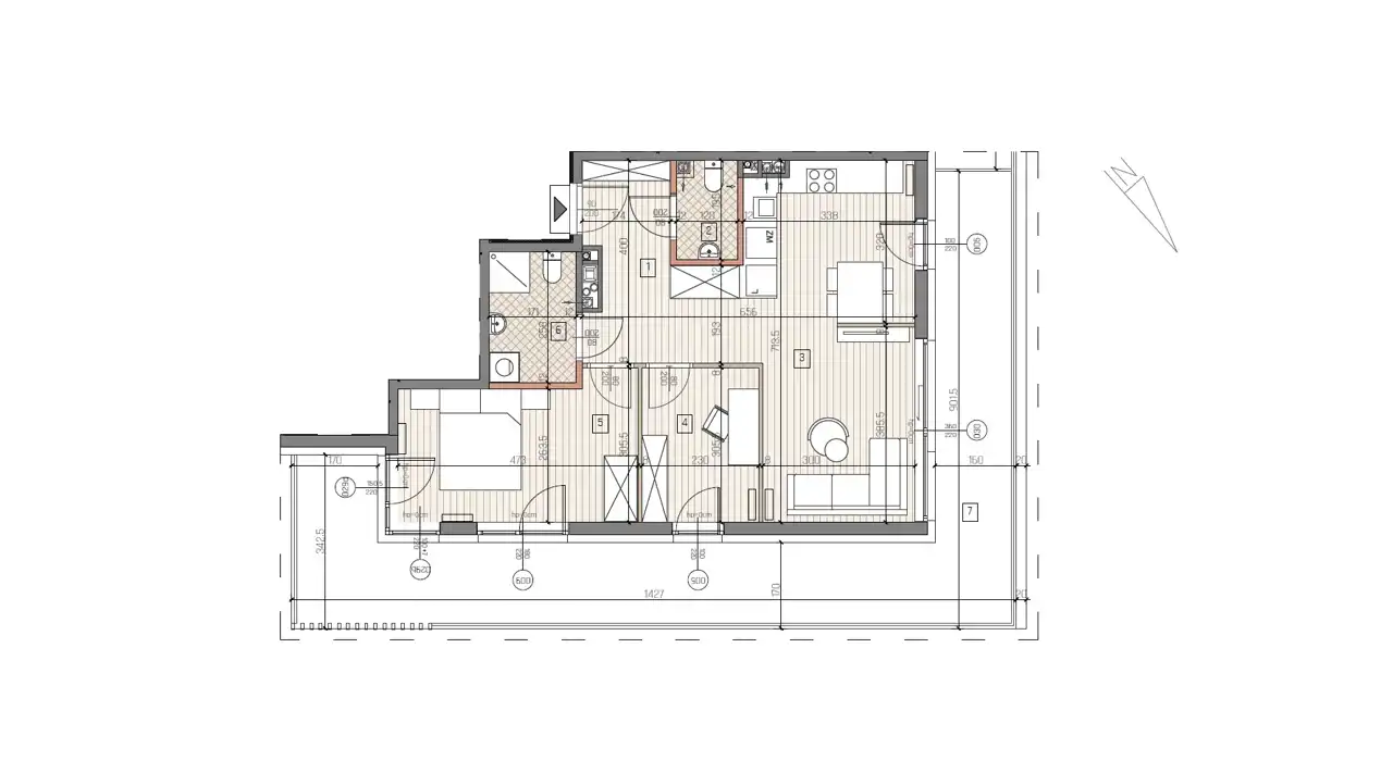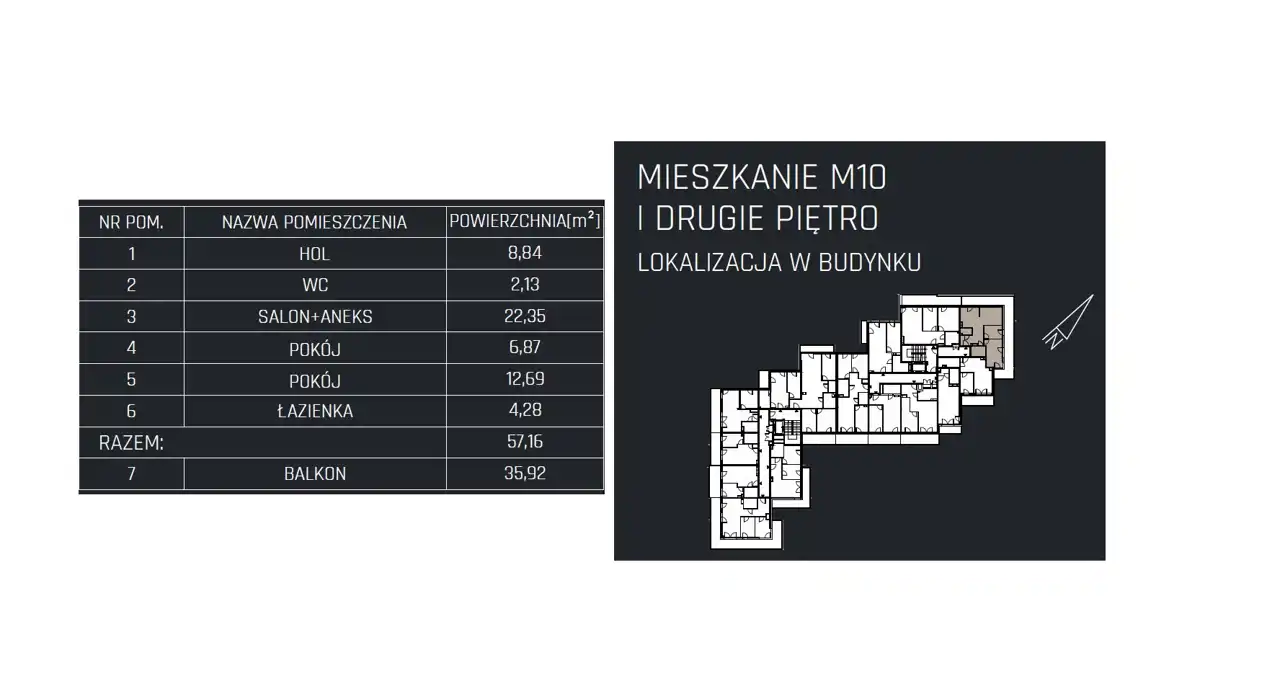 - Charakterystyka mieszkania 57.16 m2, 3 pokoje