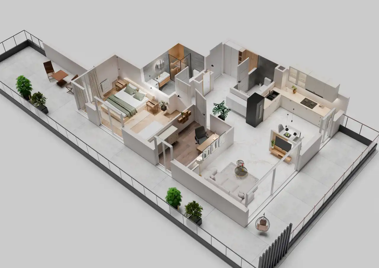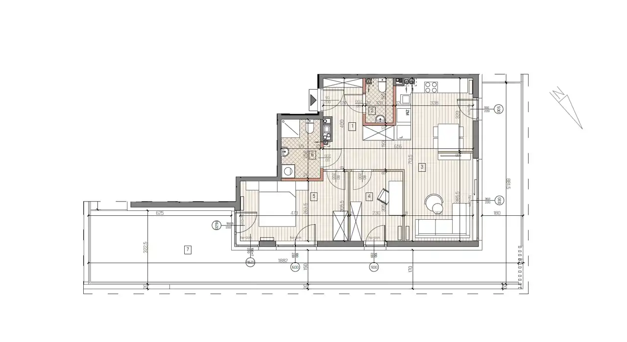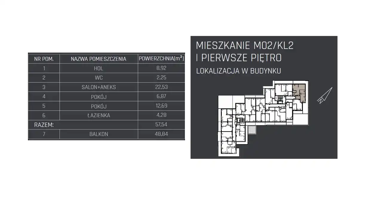 - Charakterystyka mieszkania 57.54 m2, 3 pokoje