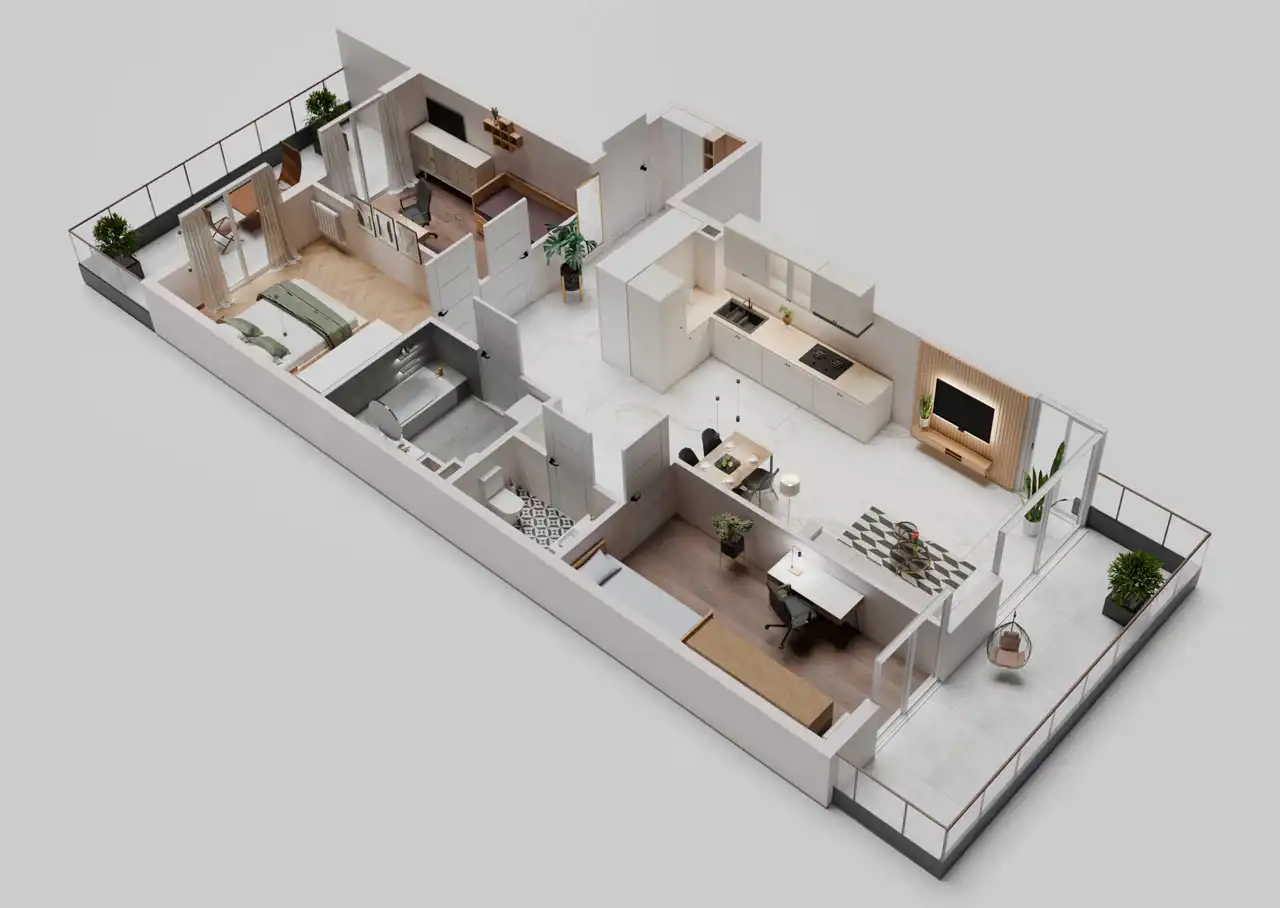 – 2 balconies with areas of 6.28m2 and 9.49m2.