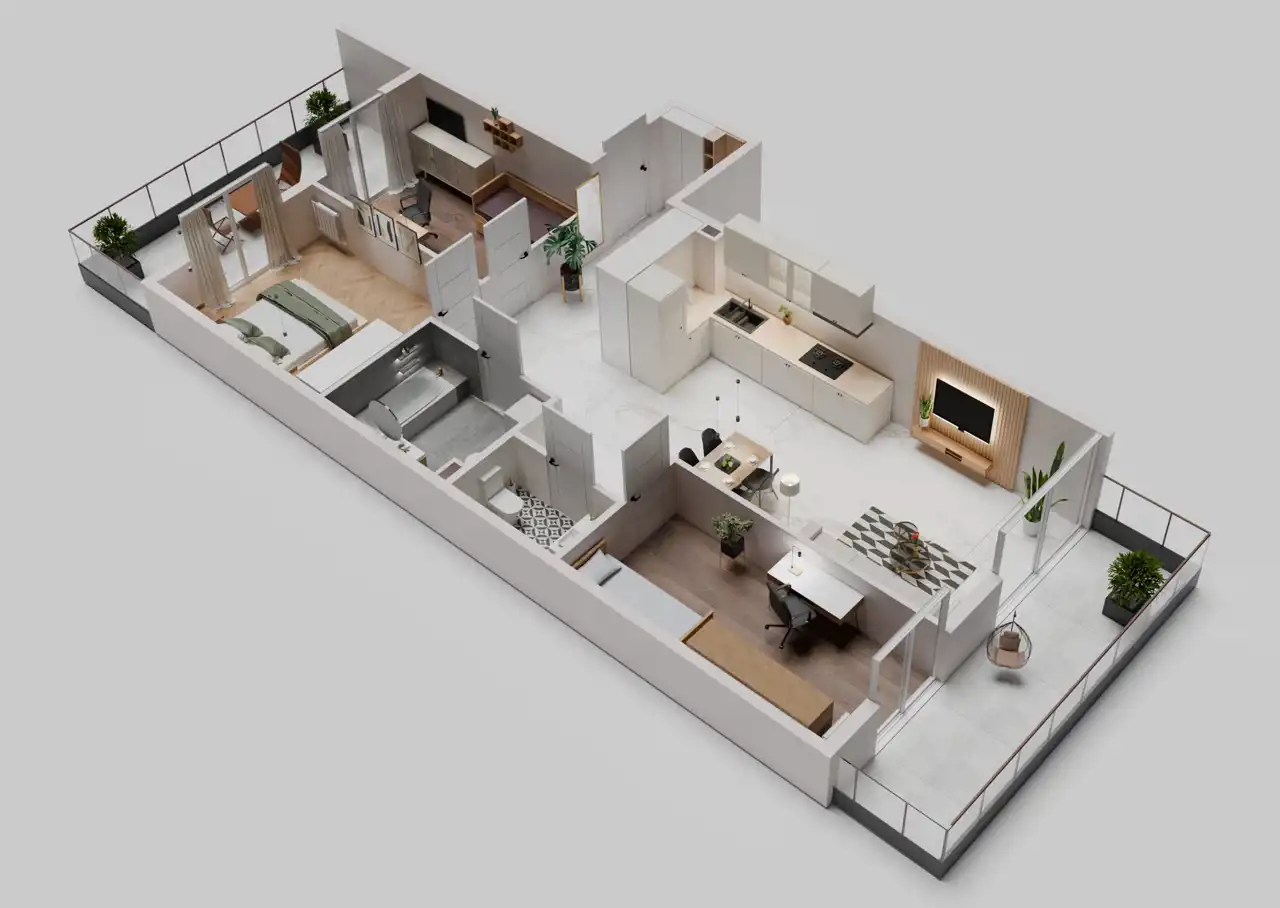 – 2 balkonów o pow. 8,25m2 i 9,49m2.