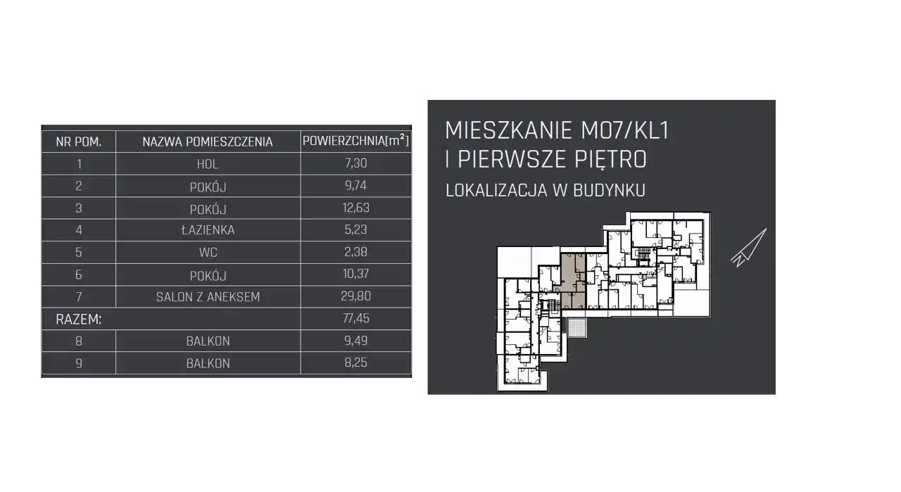 - Charakterystyka mieszkania 77.45 m2, 4 pokoje