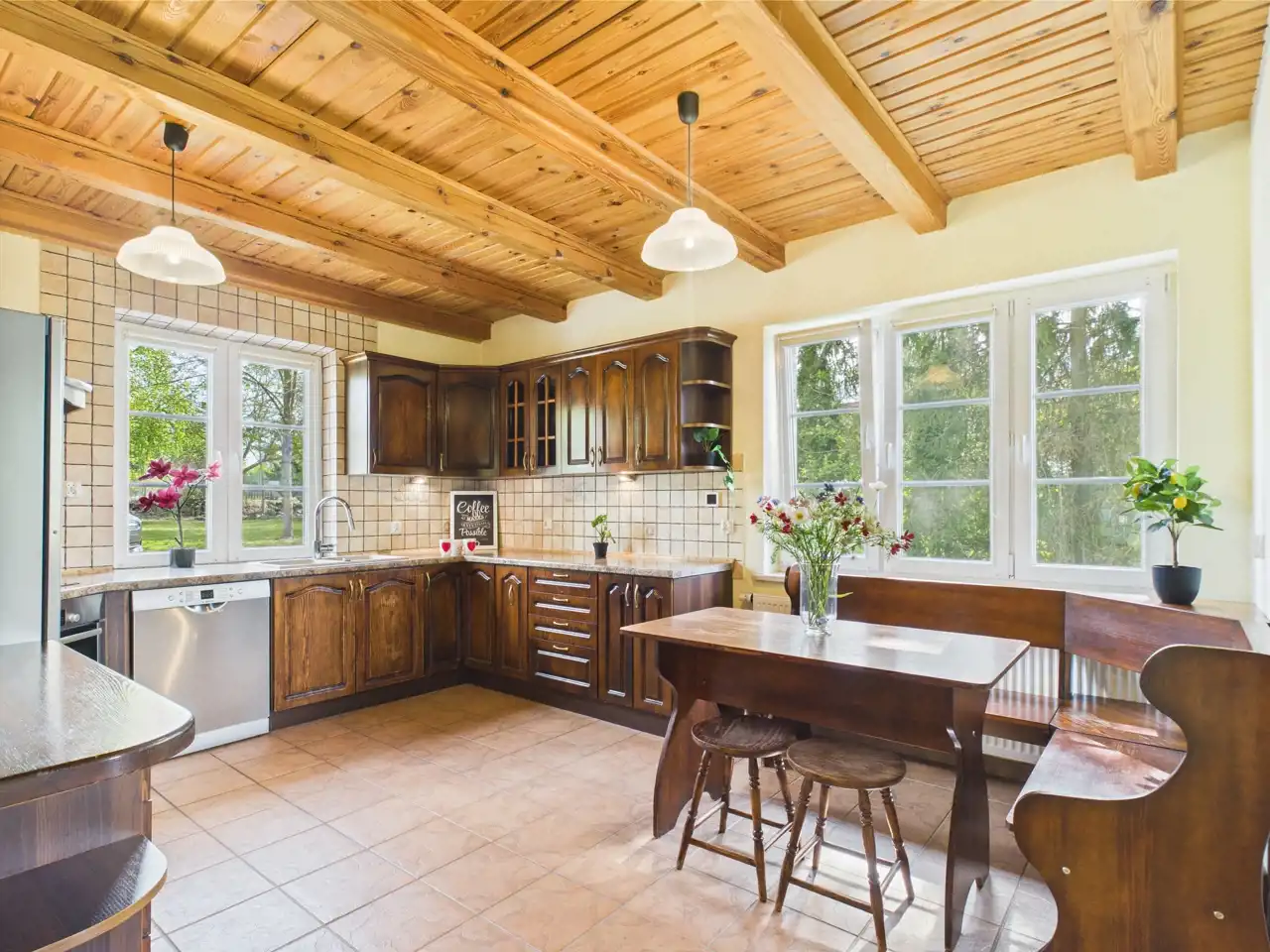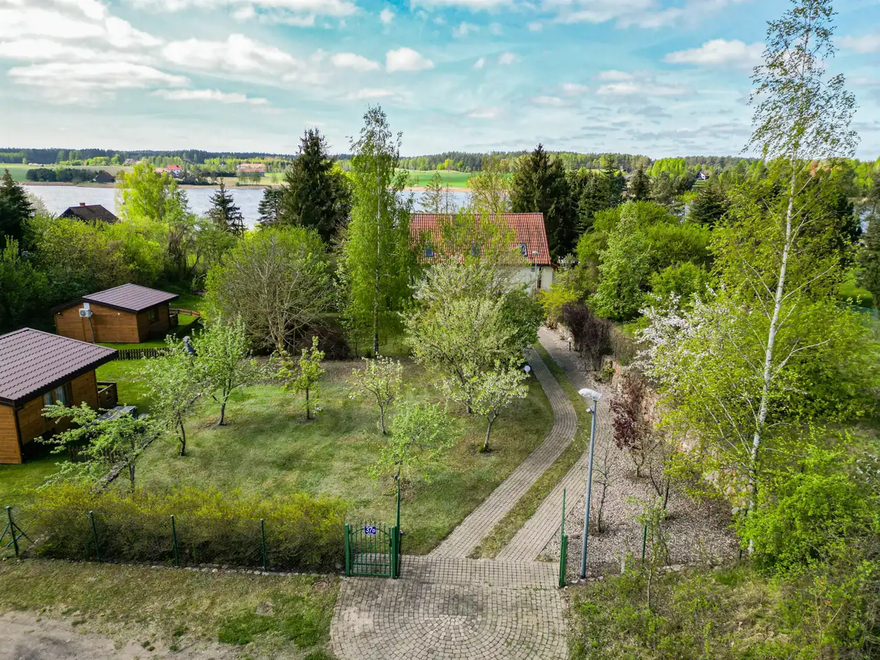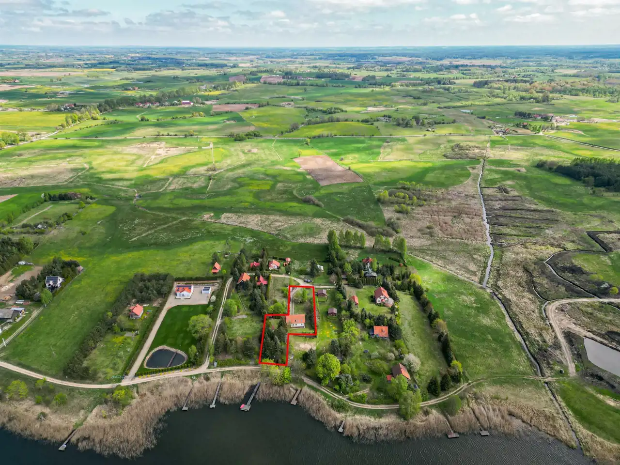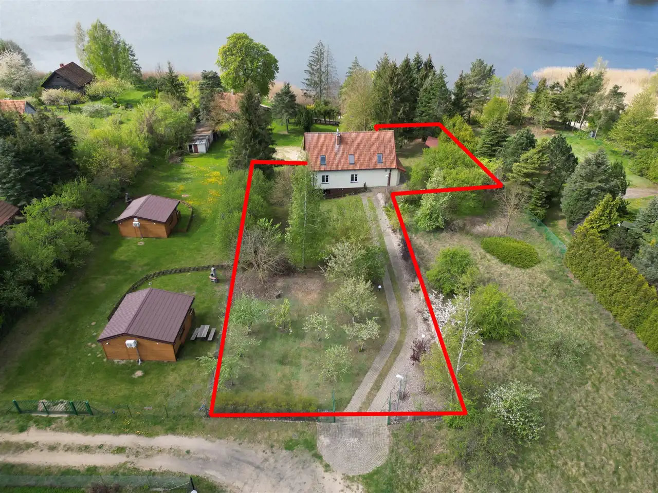 Nieruchomość jest otoczona lasem, a bezpośrednia bliskość jeziora czyni to miejsce prawdziwą oazą spokoju i prywatności.