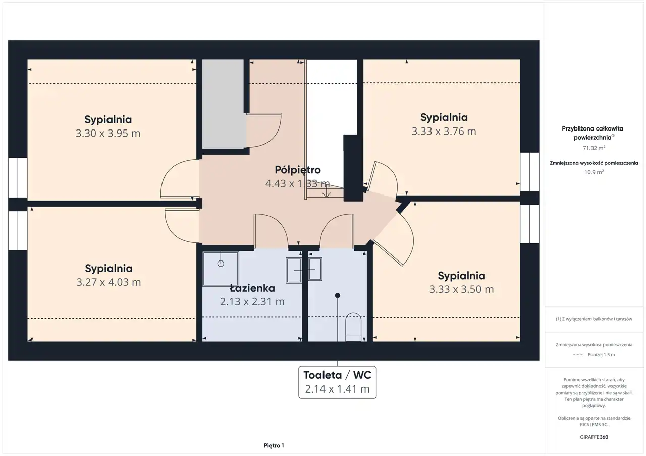 Powierzchnia około 70 m2.