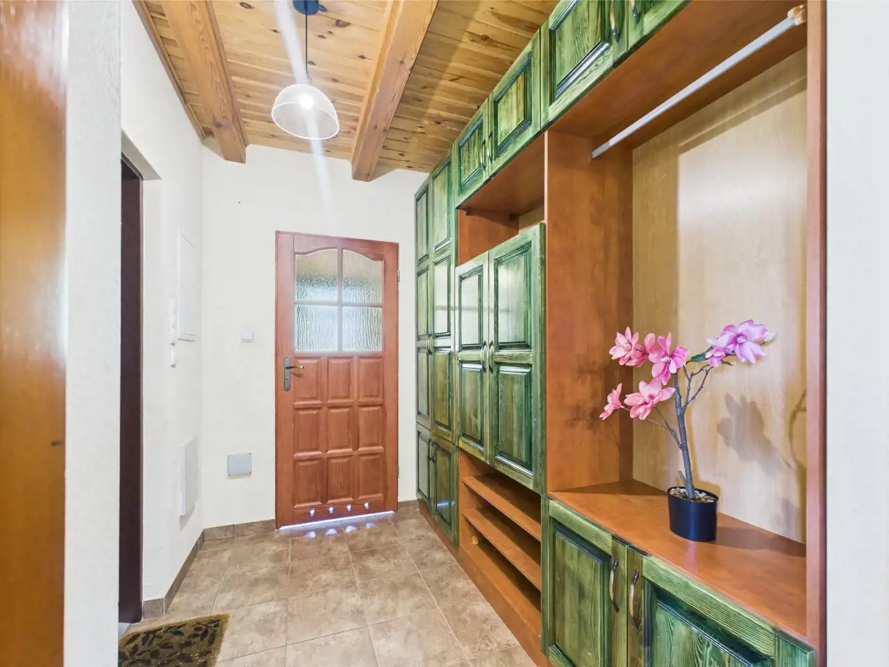 - Piętro : 4 duże sypialnie, łazienka i oddzielne WC, pomieszczenie gospodarcze, duży hall.