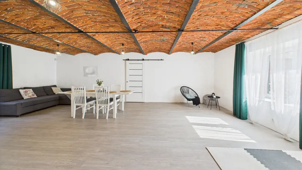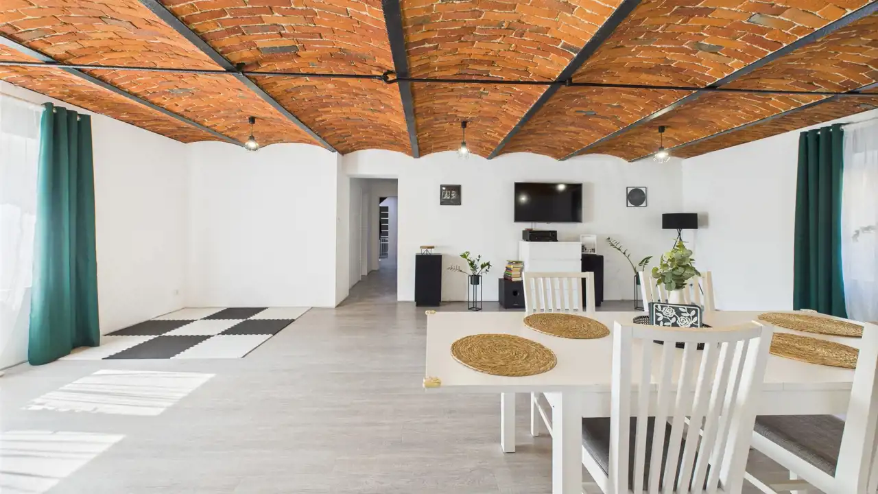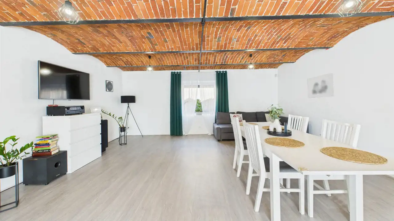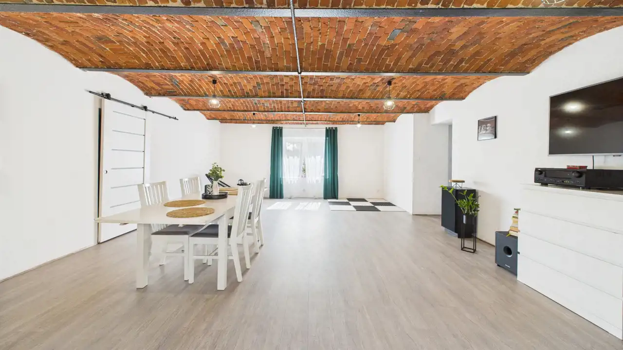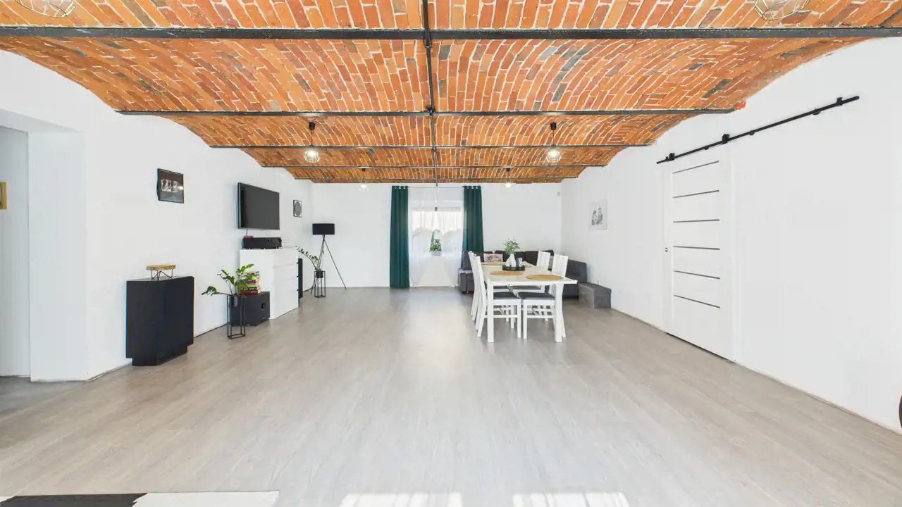 salon z jadalnią – 44,1 m² (odkryty strop kleina)