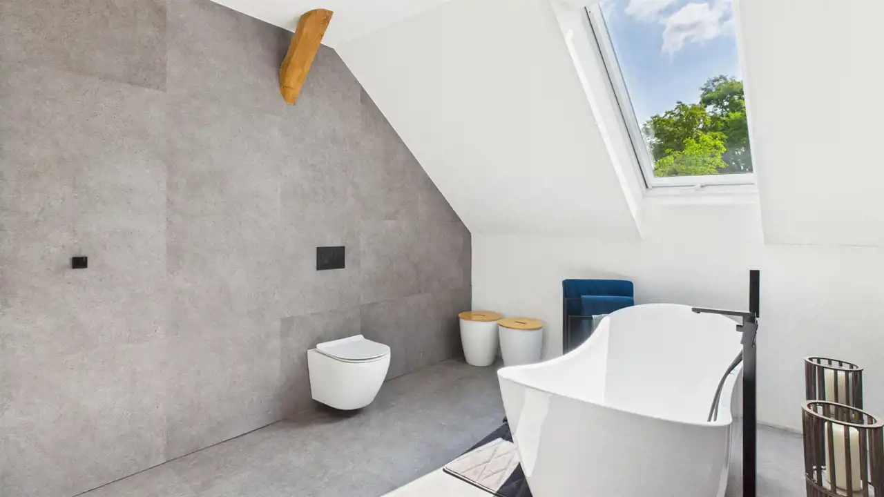 Energooszczędność: nowoczesna pompa ciepła Stiebel Eltron, ogrzewanie podłogowe na całej powierzchni, dodatkowo maty elektryczne (15 m²).