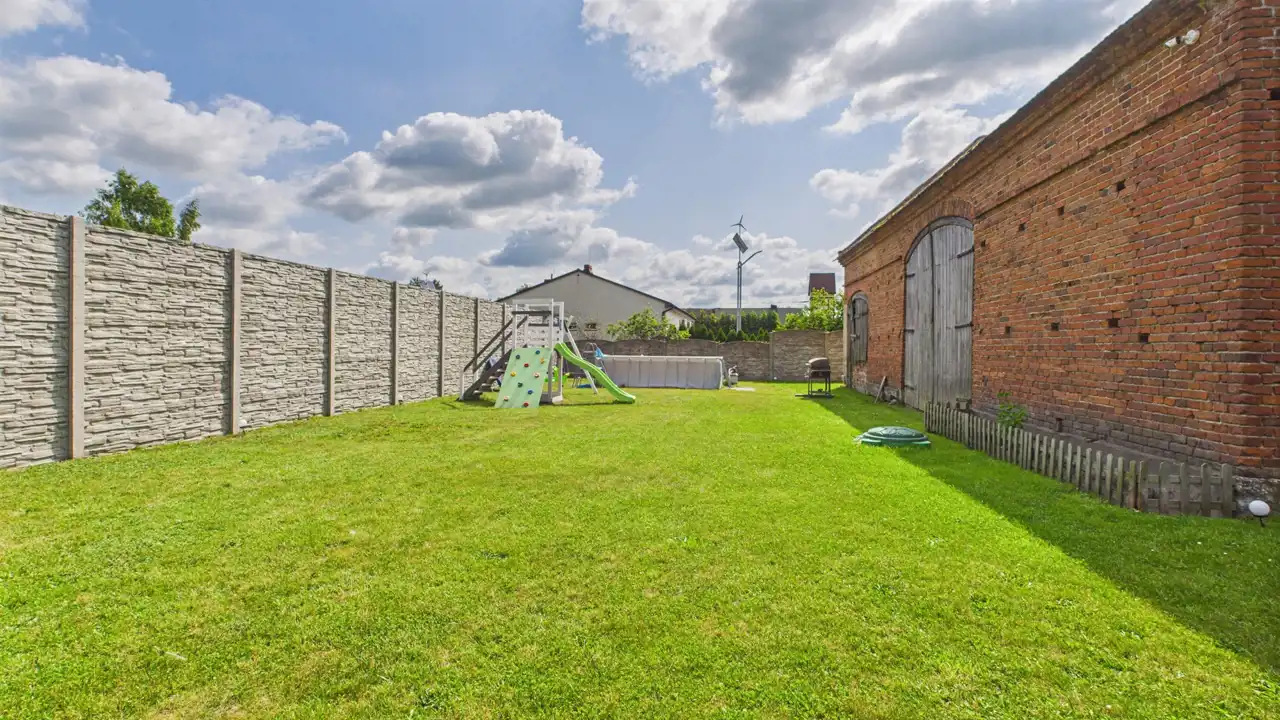 Powierzchnia: 14 arów, ogrodzona, z dużym potencjałem na stworzenie przestrzeni wypoczynkowej. Na terenie studnia, betonowy płot, dużo zieleni.