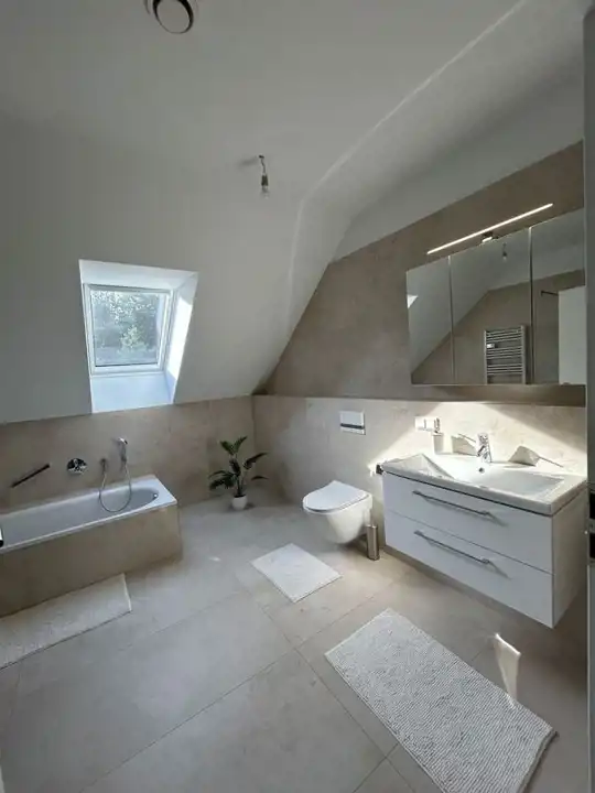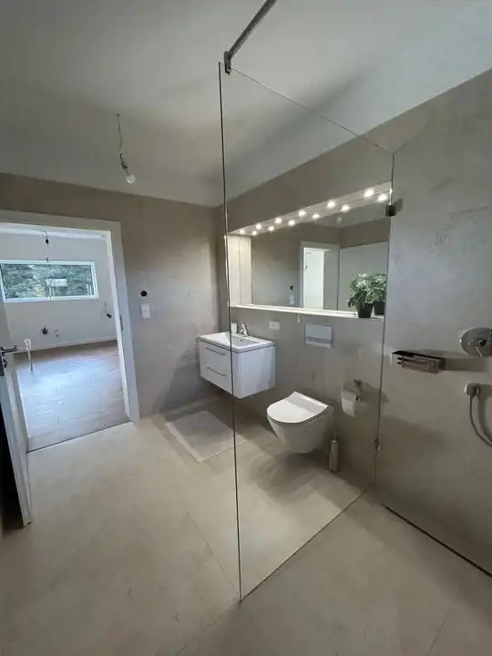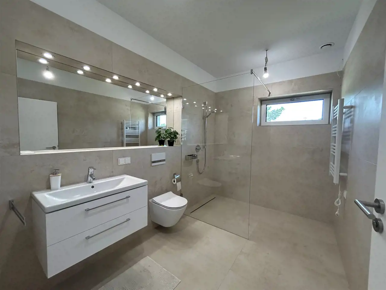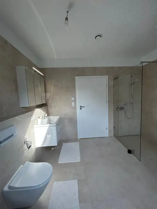 Na ścianach farby i kafle wysokiej klasy a podłogi wyłożono panelami i terakotą dobrego gatunku AC4.