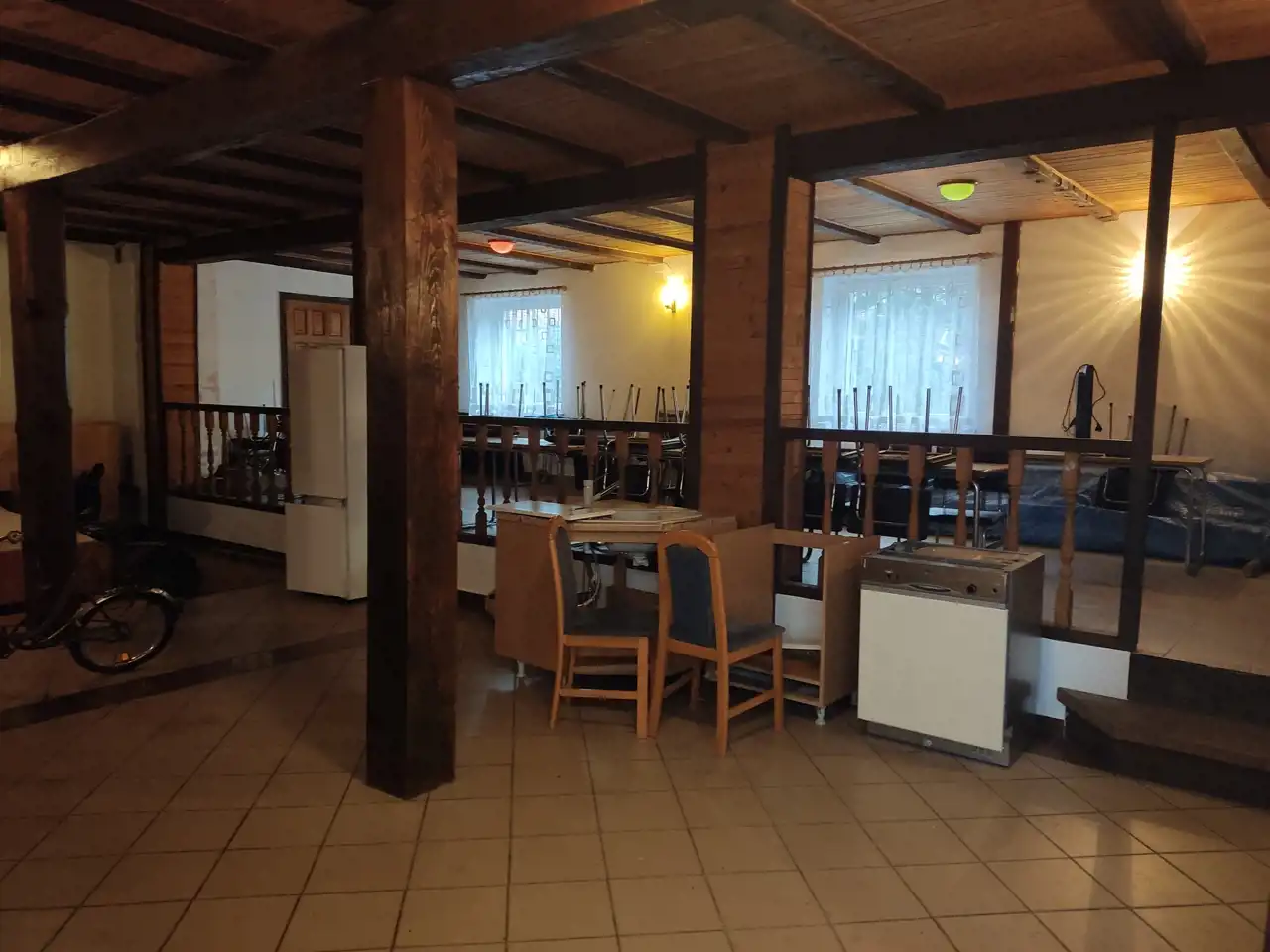 Posesja ogrodzona z dostępem do drogi publicznej. Odpowiednie położenie budynku na działce sprawia że pozostaje miejsce na wypoczynek po pracy dla dorosłych, zabawę dla dzieci jak również przyjęcie miłych gości. Dom budowany metodą tradycyjną, wykończenia standardowe, na ścianach tapety, farby i kafle natomiast na podłogach panele i terakota,