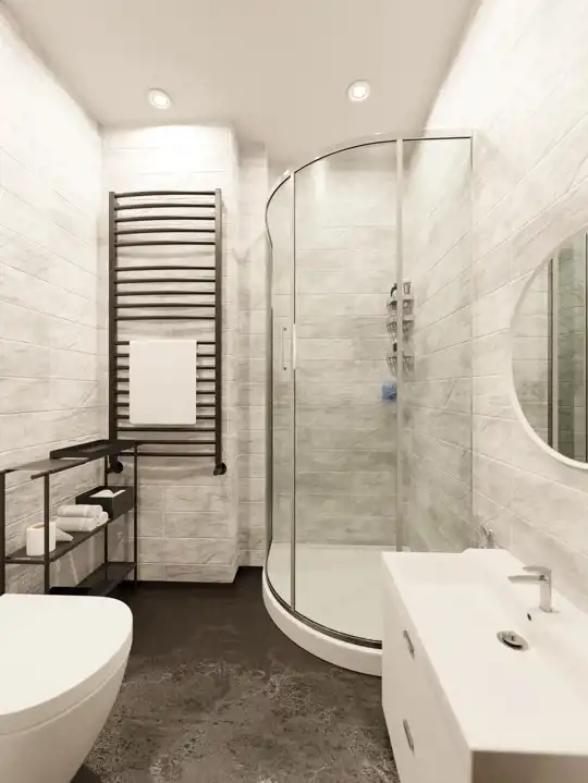 - ogrzewanie podłogowe oraz grzejniki drabinkowe w łazienkach,