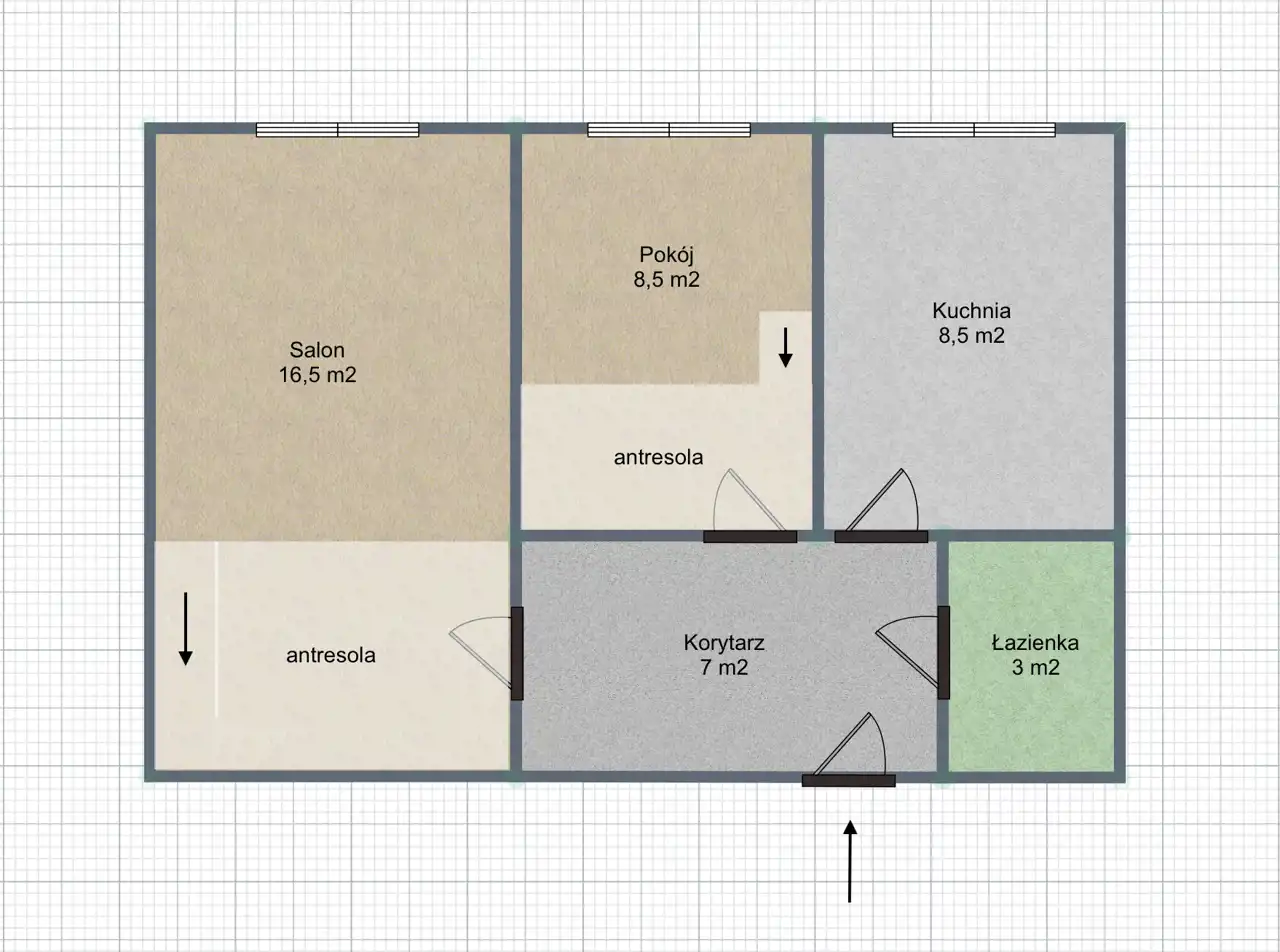 Mieszkanie - o powierzchni 43,1 m² składa się z dwóch pokoi, w tym przestronnego salonu, małego pokoju, kuchni, korytarza oraz łazienki. Mieszkanie jest funkcjonalne i dobrze doświetlone. W salonie oraz w pokoju częściowo zaadaptowano antresole która może pełnić przestrzeń do spania lub do pracy. W korytarzu antresola pełni funkcje dodatkowej przestrzeni do przechowywania. W całym mieszkaniu okna PCV, w pokojach na podłodze położono panele a w łazience, kuchni oraz korytarzu kafle. Do mieszkania przynależy komórka lokatorska. Ogrzewanie miejskie.
