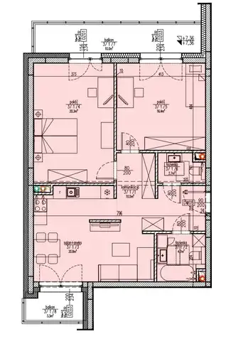 - Charakterystyka mieszkania 75.7 m2, 3 pokoje