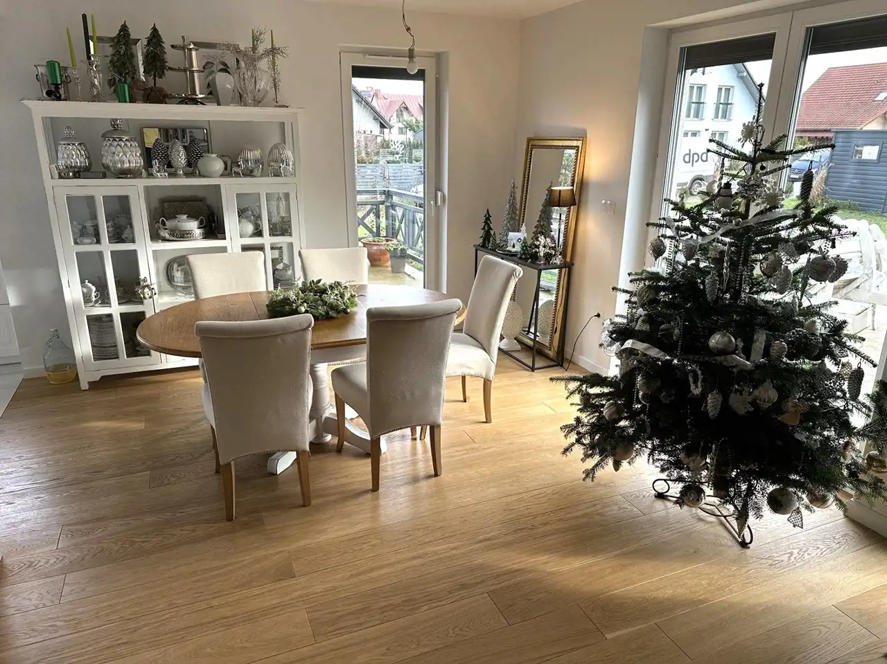 - na podłogach w całym domu deska drewniana dębowa