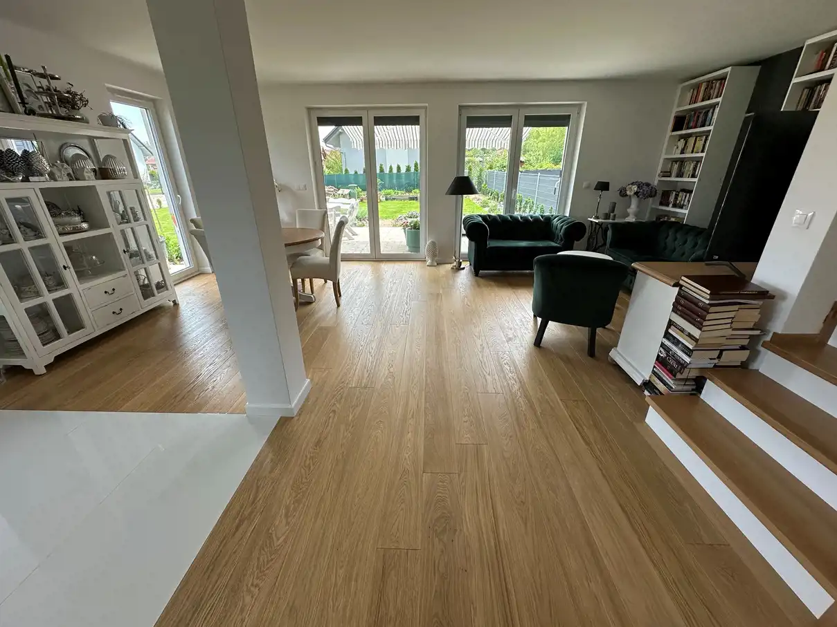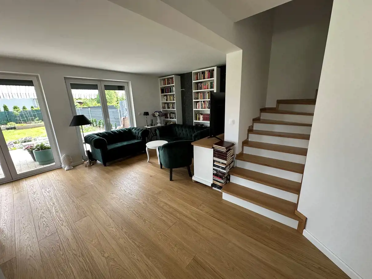 - przestronny, słoneczny i ustawny salon połączony z aneksem kuchennym o powierzchni 36m2 z dwoma wyjściami na dwa tarasy (25m2 i 12m) oraz wyjściem na ogród.