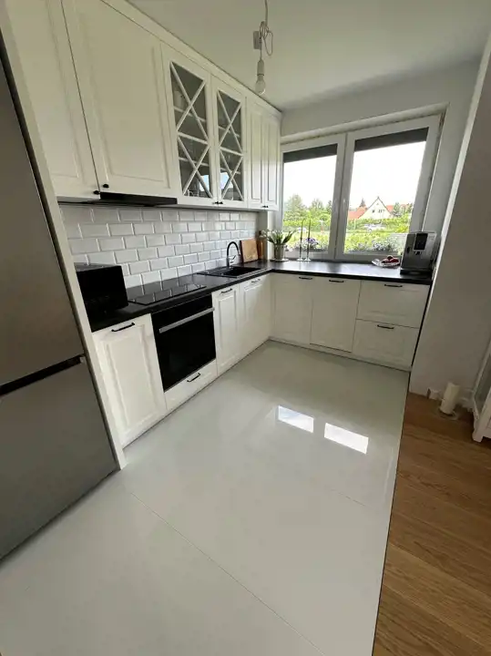 W cenie pozostaje zabudowa kuchenna ze sprzętem AGD, szafy w zabudowie.