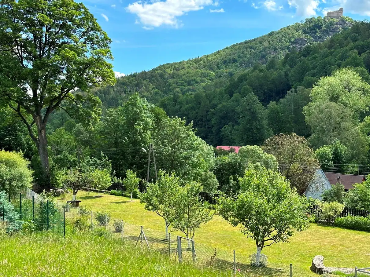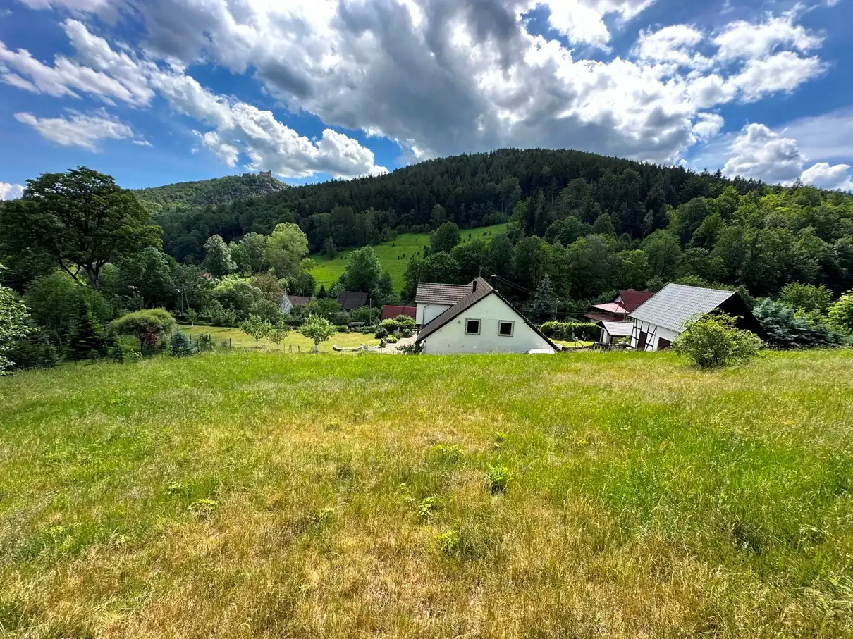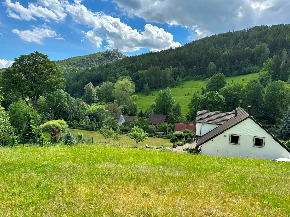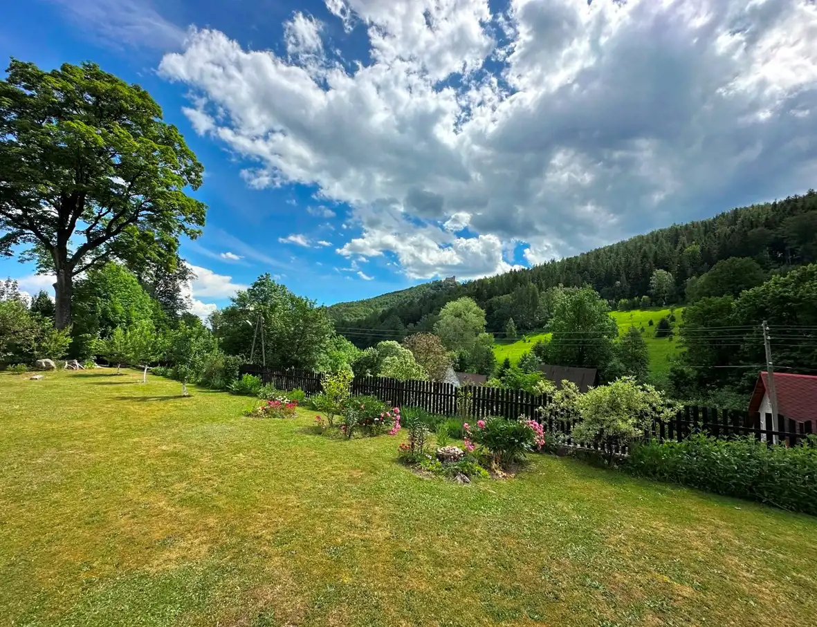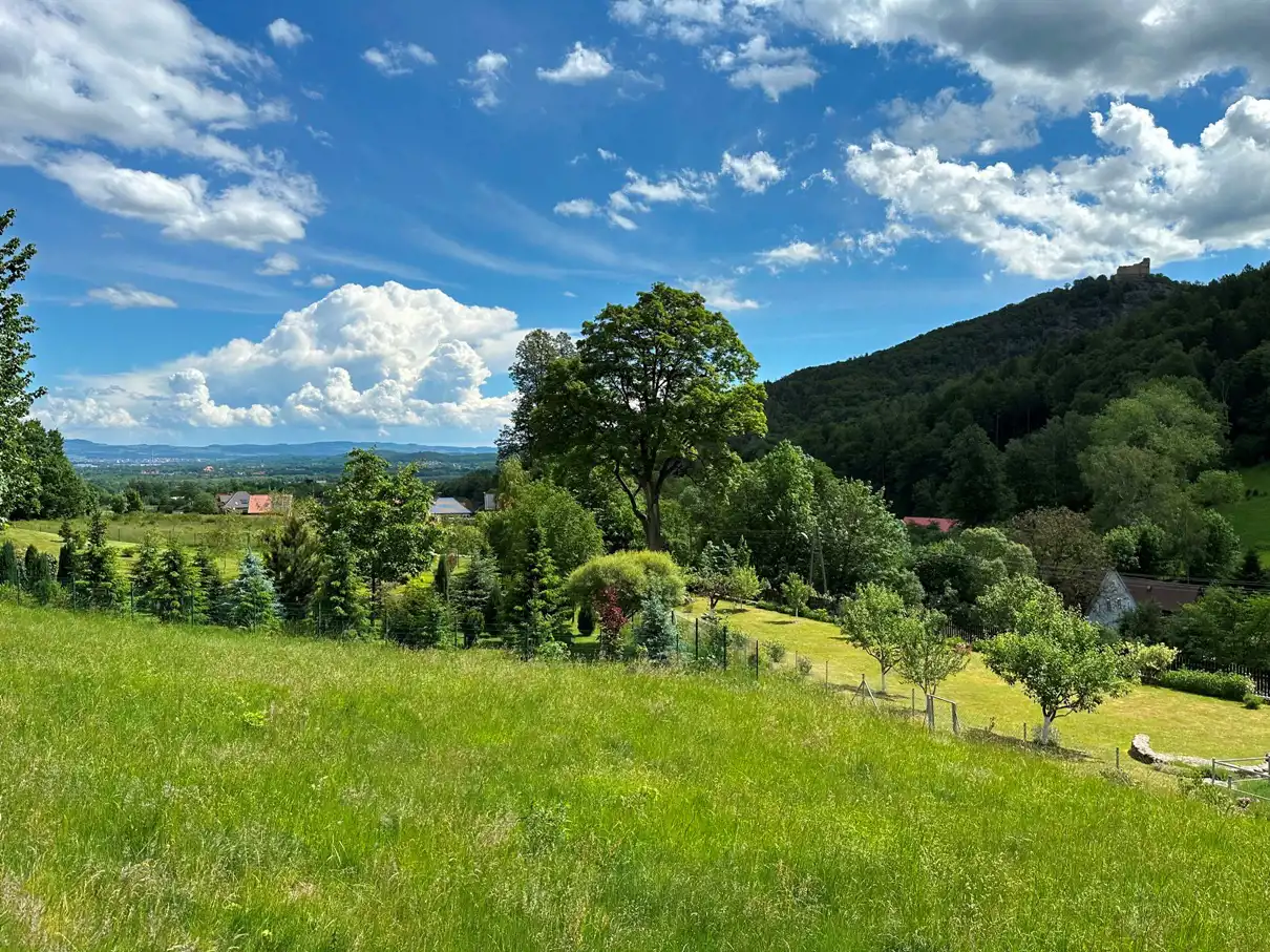 Z terenu działki piękny niczym nie zasłonięty widok na lasy, góry, kotlinę jeleniogórską i zamek Chojnik.