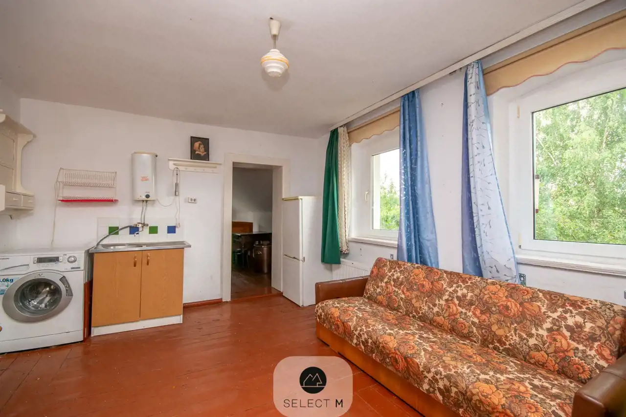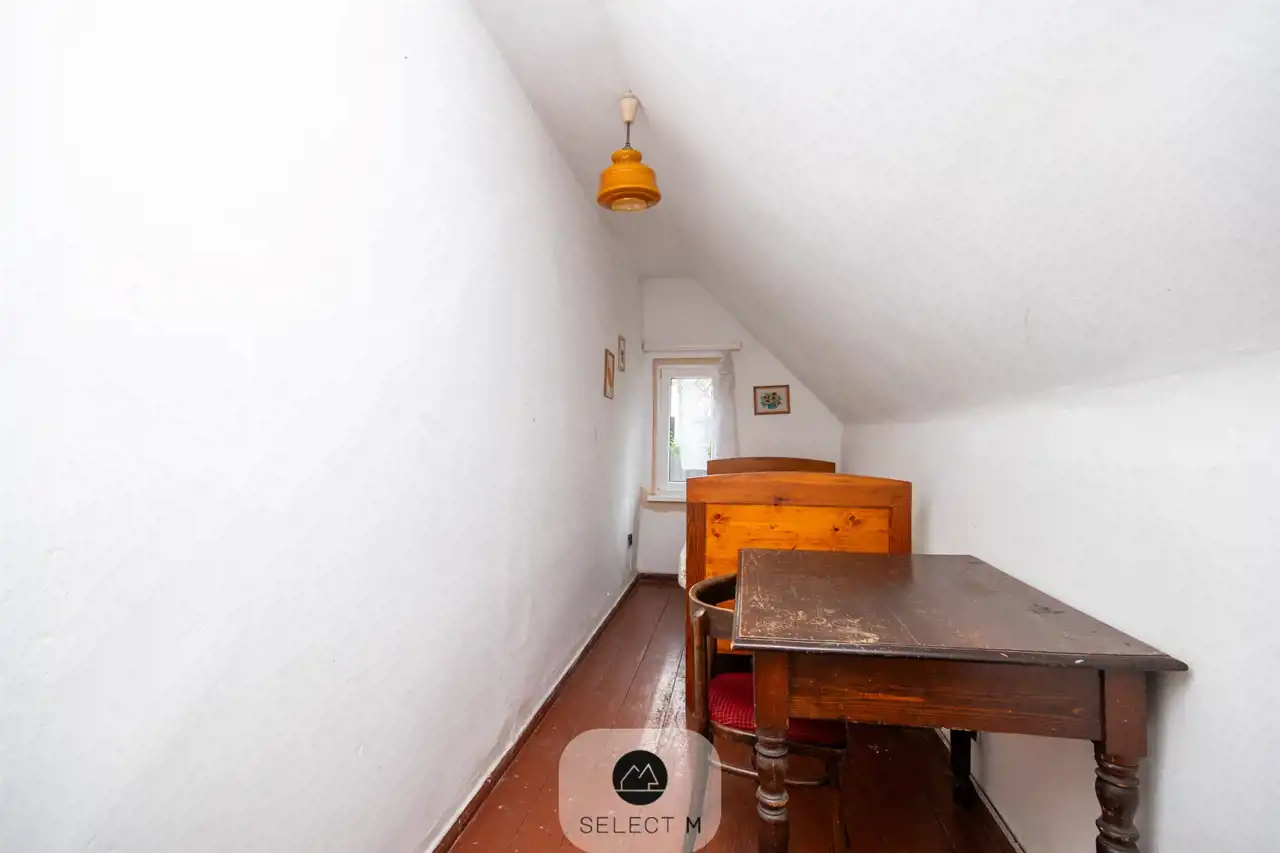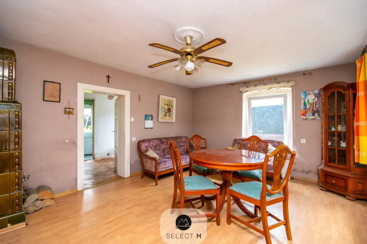 Budynek podpiwniczony, o powierzchni około 200 m², oferuje dwa pełne poziomy mieszkalne oraz poddasze do adaptacji.