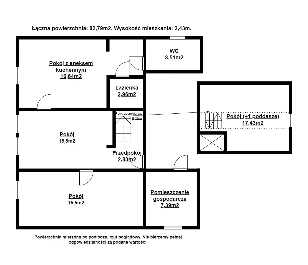 LOKAL NA 1. PIĘTRZE + PODDASZU – 82,79 m² (użytkowe 75,40 m²)