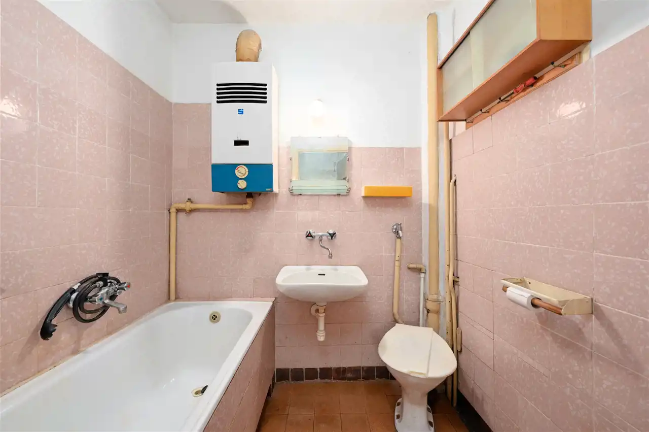 - Ogrzewanie: kominek z rozprowadzeniem + piec gazowy jednofunkcyjny. Podgrzanie ciepłej wody piecem gazowym przepływowym.