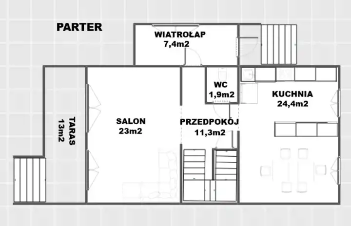 Parter (68 m²):