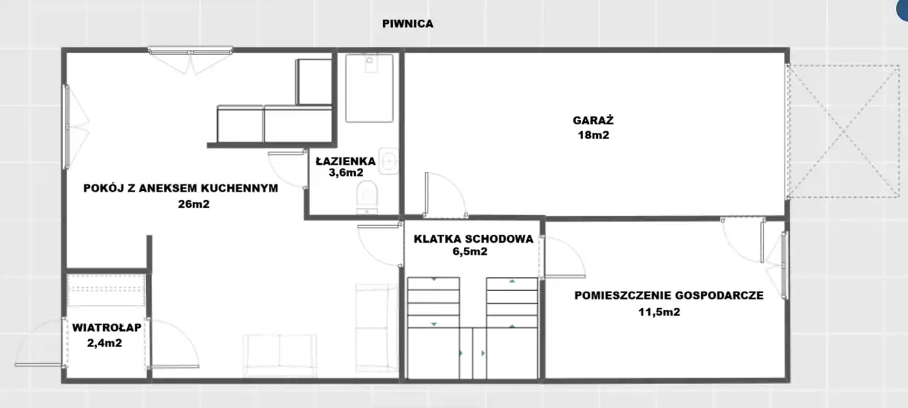 • część gospodarcza – 18 m²