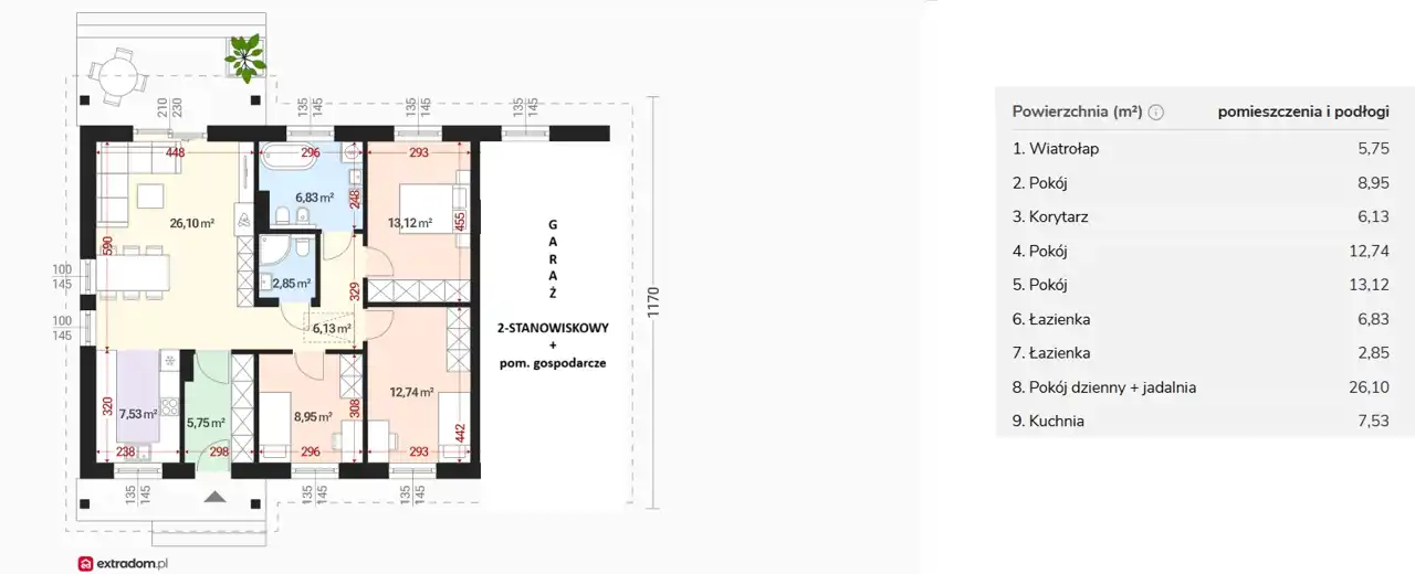 - salon z jadalnią o powierzchni ok. 26 m2 z wyjściem na taras oraz ogród
