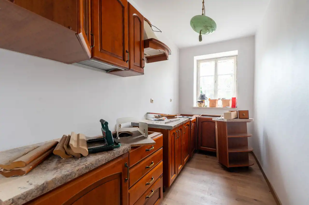 Ogrzewanie zapewnia piec gazowy, a dodatkowym atutem nieruchomości są piękny piec kaflowy oraz kominek, które dodają wnętrzom niepowtarzalnego klimatu. Wszystkie podłogi i ściany zostały starannie wykończone, przy czym wiele elementów wykonano ręcznie, z dbałością o każdy detal. Okna są wymienione na wysokiej jakości, co zapewnia doskonałą izolację termiczną i akustyczną.