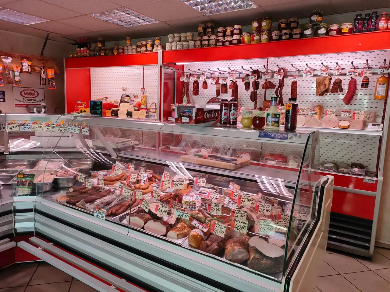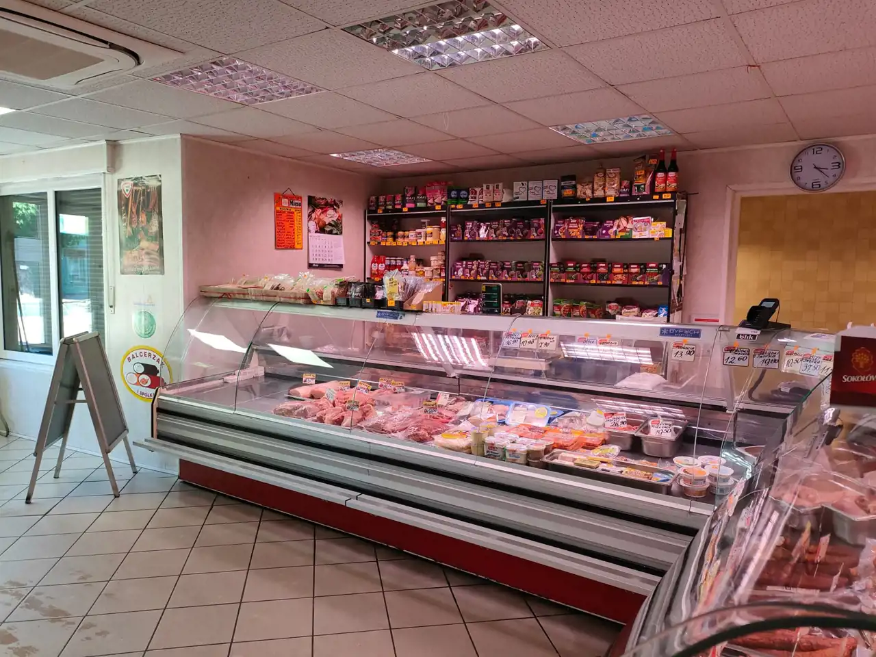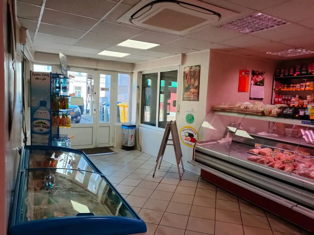 - sala sprzedaży sklepowej wraz z ladami chłodniczymi i zamrażarką oraz wejściem od strony ulicy z duża witryną około 40m2