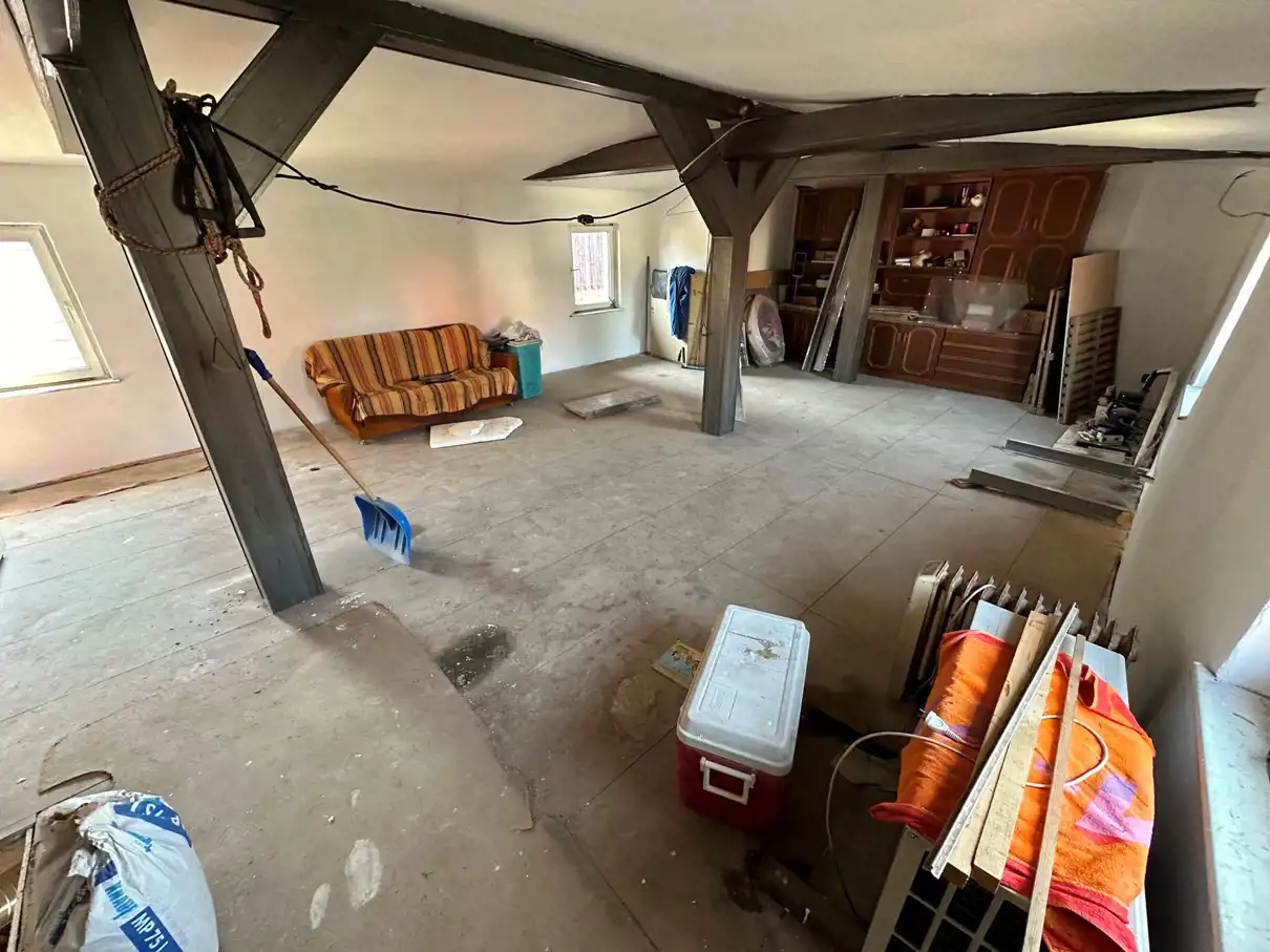 Piętro wymaga kapitalnego remontu i własnej aranżacji na mieszkanie.