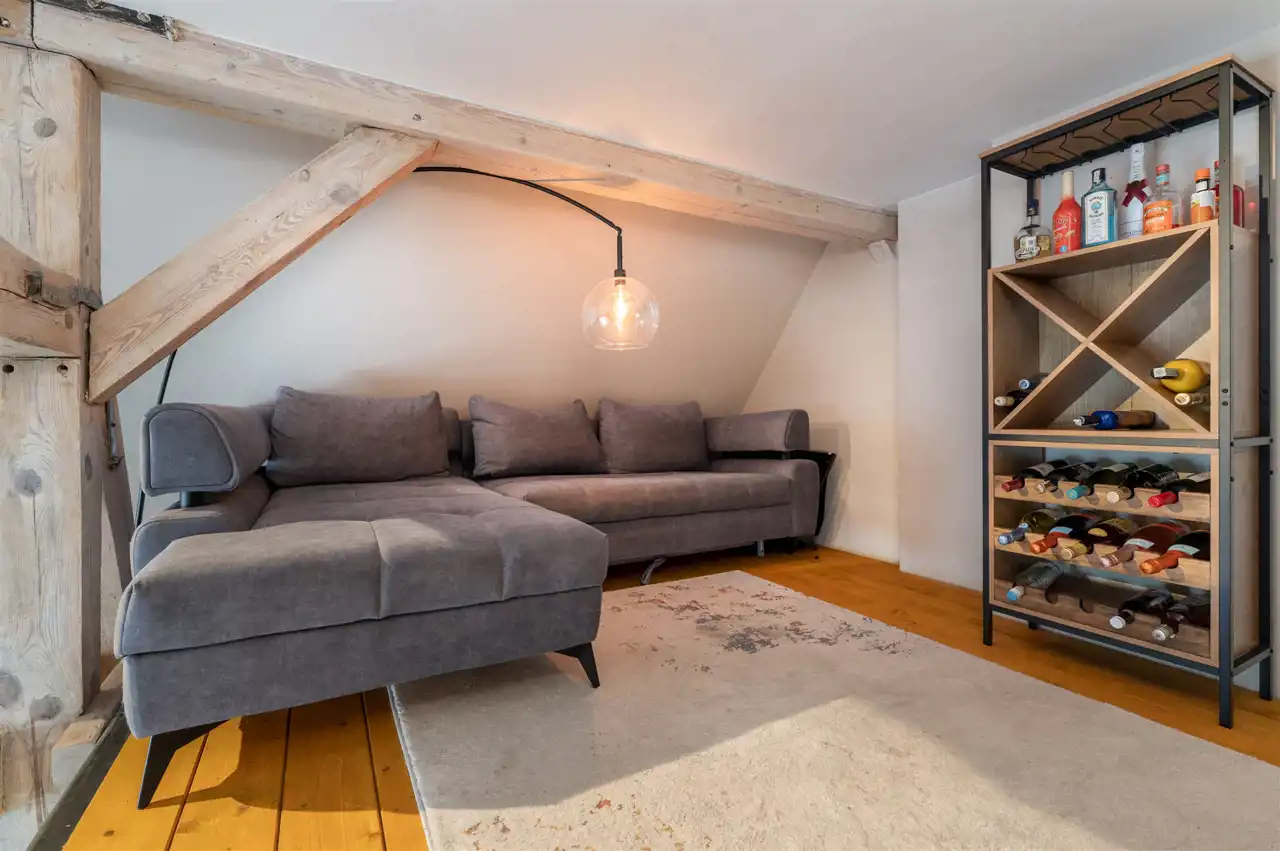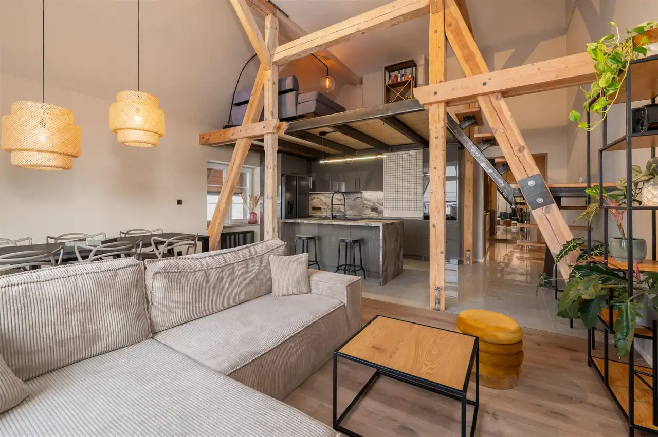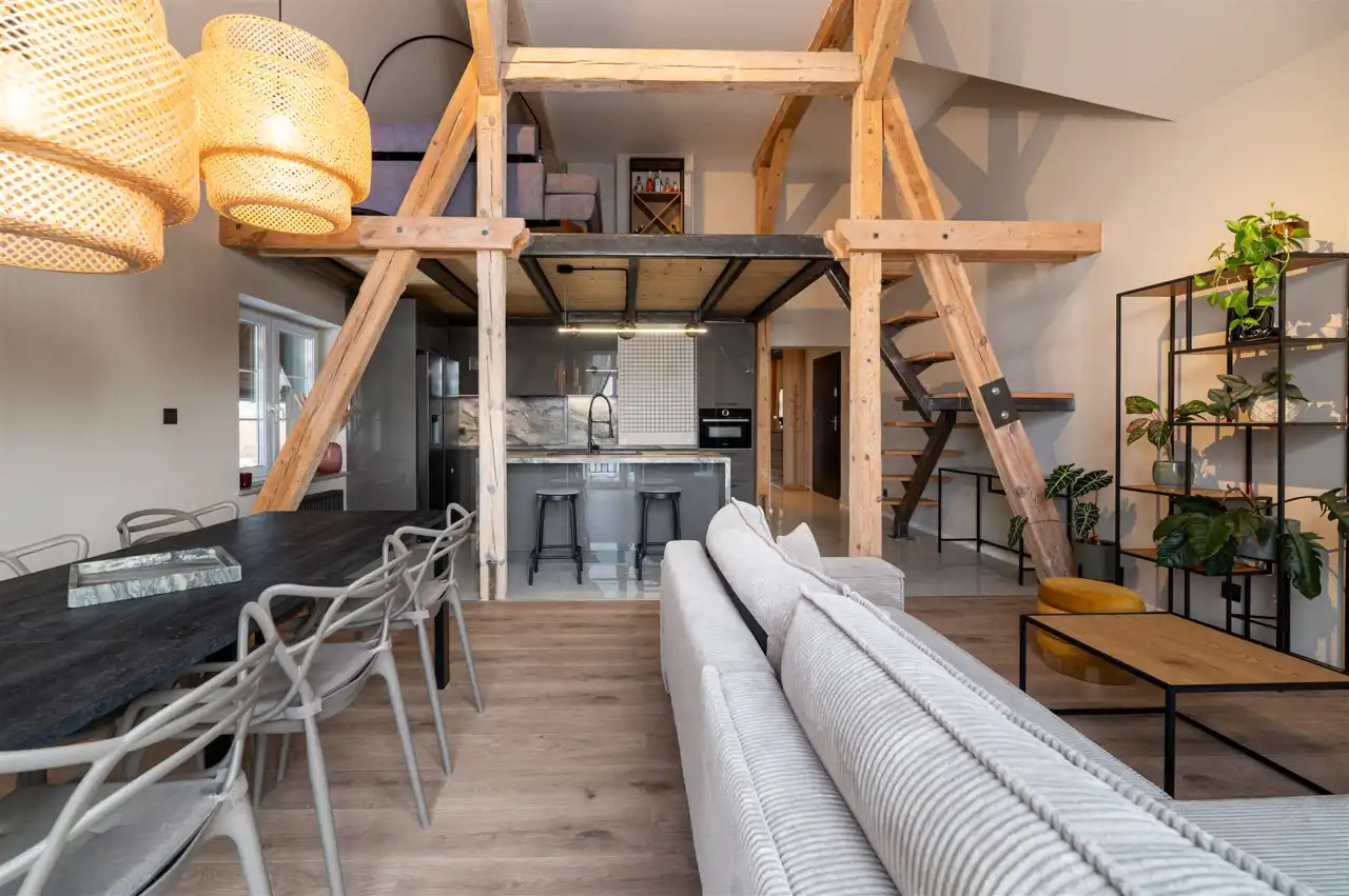 - antresola nad częścią kuchenną – ok. 18,5 m² dodatkowej powierzchni.