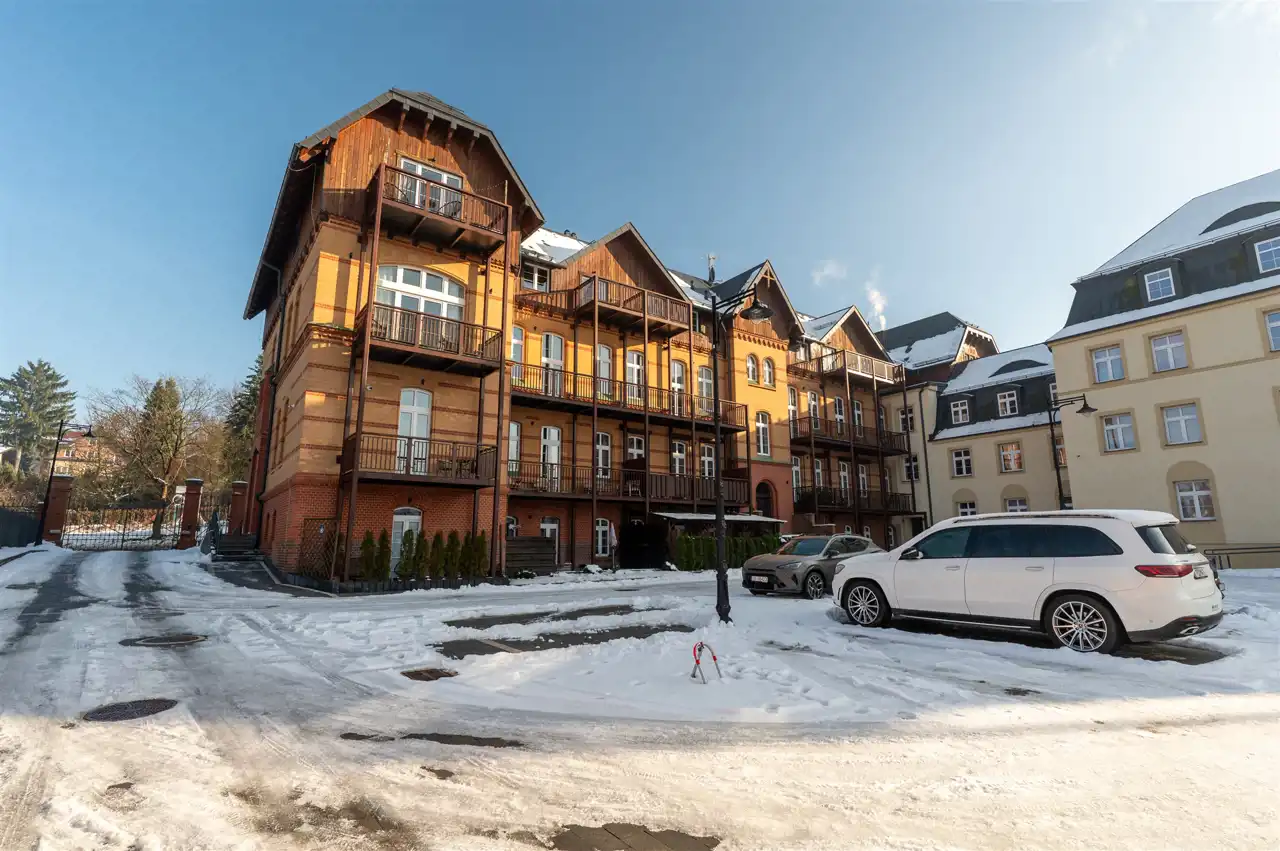 Do mieszkania przynależy miejsce postojowe oraz przestronna komórka lokatorska. Duży balkon od strony południowej oferują imponujący widok na panoramę Karkonoszy, stanowiąc idealną przestrzeń do wypoczynku.