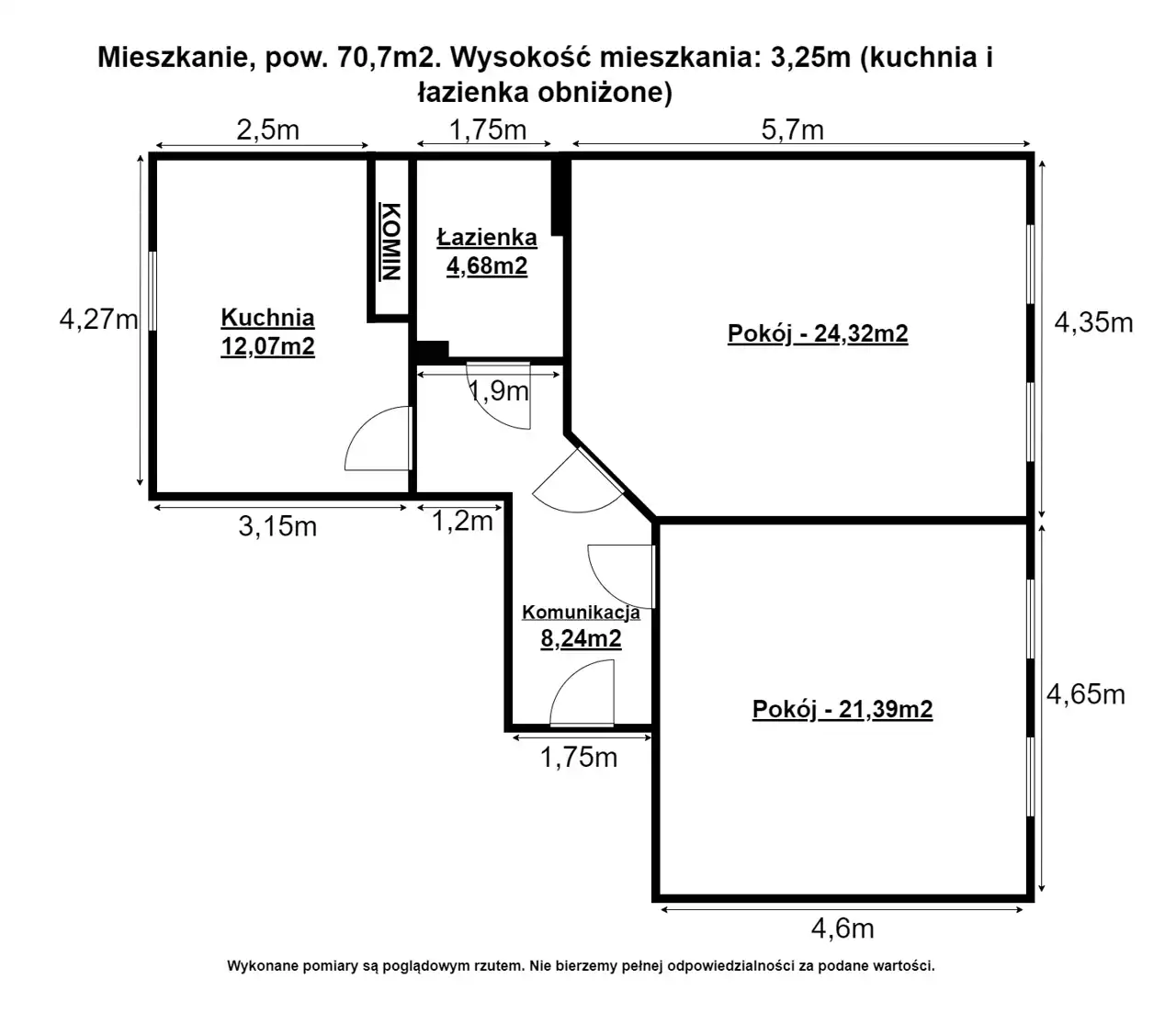 - 70,5 m² powierzchni – przestronne pokoje, wysokie sufity, funkcjonalny układ