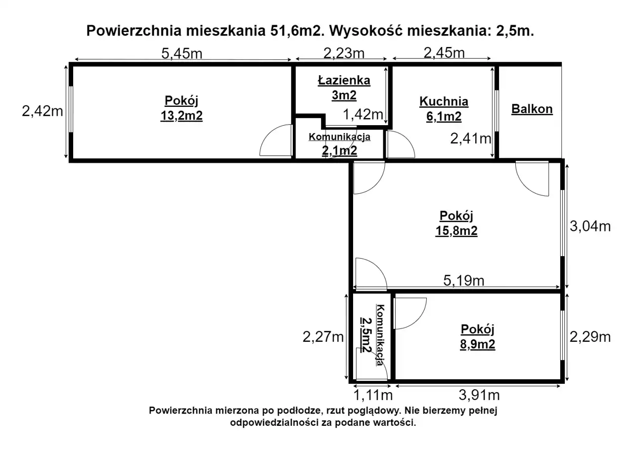 - Charakterystyka mieszkania 51.6 m2, 3 pokoje