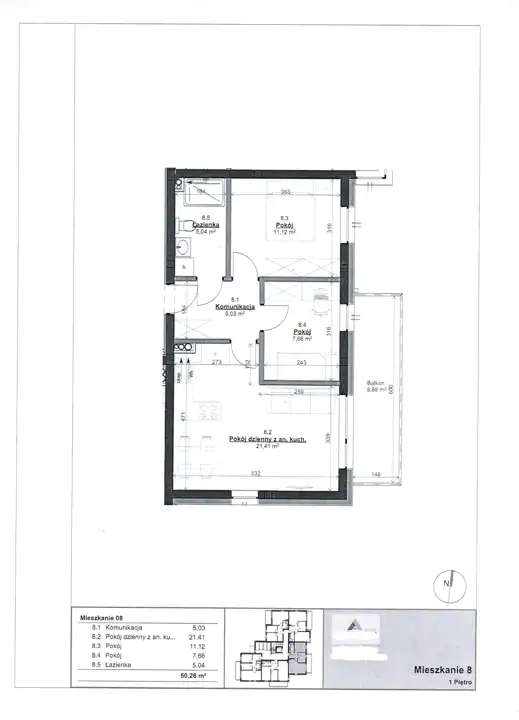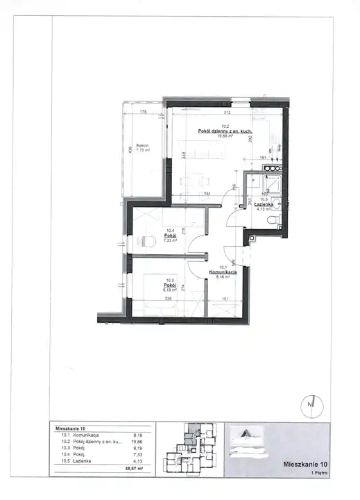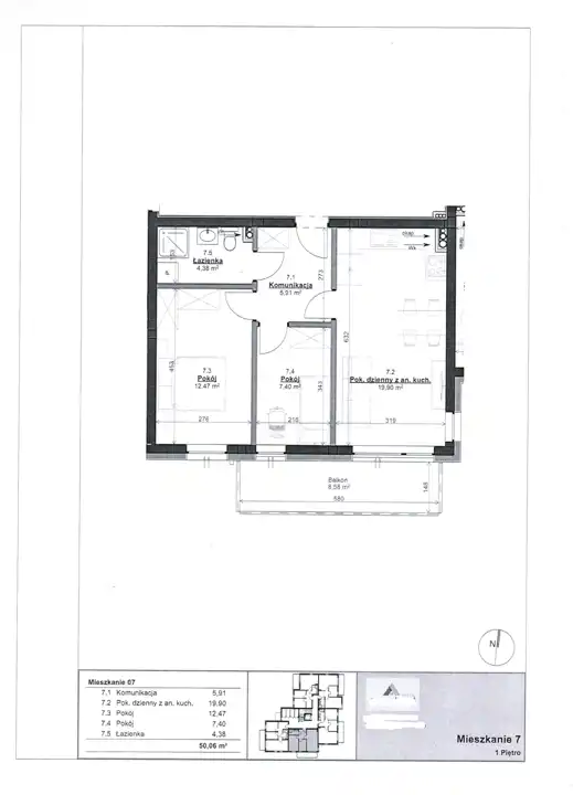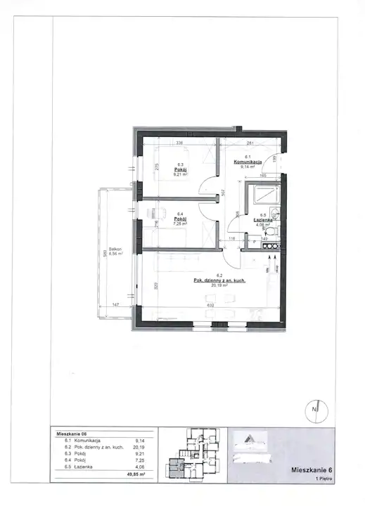 - Charakterystyka mieszkania 49.85 m2, 3 pokoje