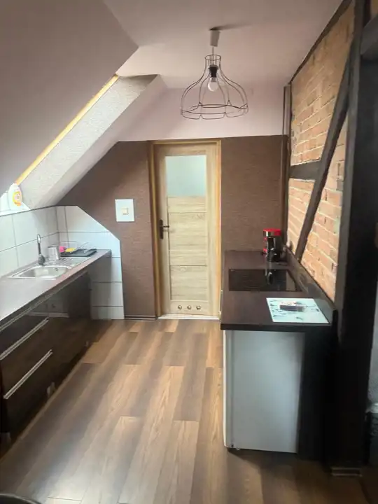 Lokal mieszkalny o powierzchni 48 m2 z ogrzewanie gazowym, do mieszkania przynależy ogródek (około 200 m2) oraz miejsce parkingowe.