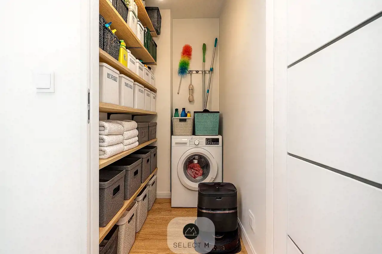 • funkcjonalna garderoba oddzielona od strefy dziennej;