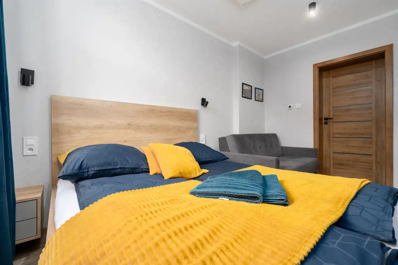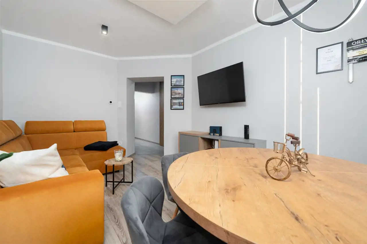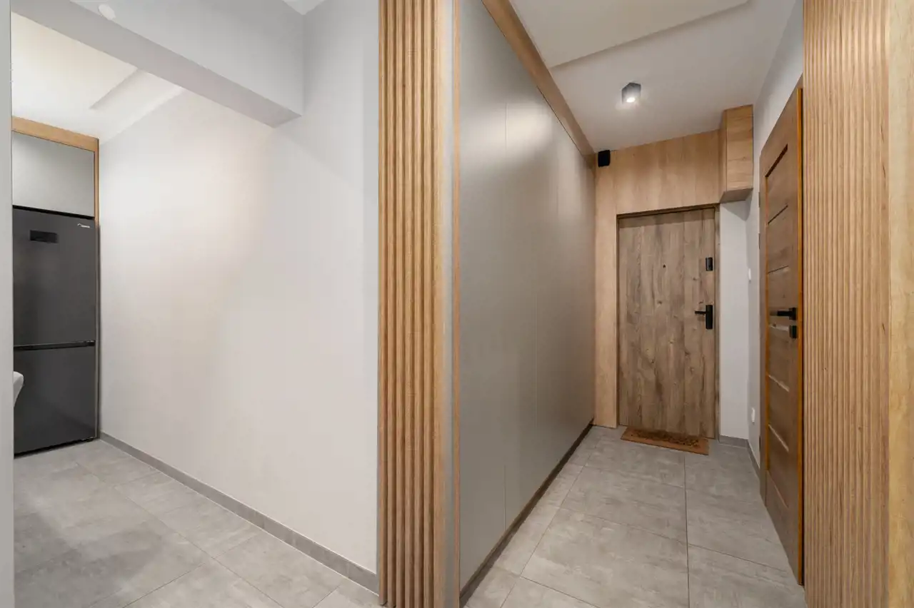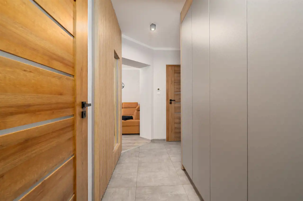 Lokal jest w pełni wyposażony i gotowy do zamieszkania bez dodatkowych nakładów finansowych. Składa się z sypialni, salonu, kuchni, łazienki i przedpokoju. Wnętrze jest przytulne, zadbane i funkcjonalne. Dzięki dodatkowej termoizolacji przy oknach mieszkane jest ciepłe i ekonomiczne w utrzymaniu.