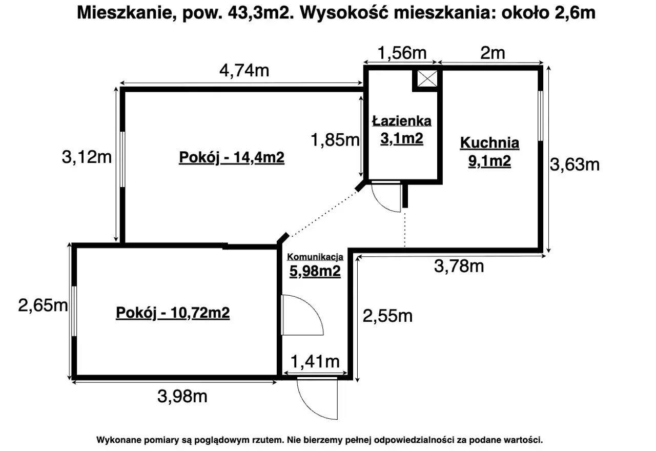 - Charakterystyka mieszkania 43.29 m2, 2 pokoje