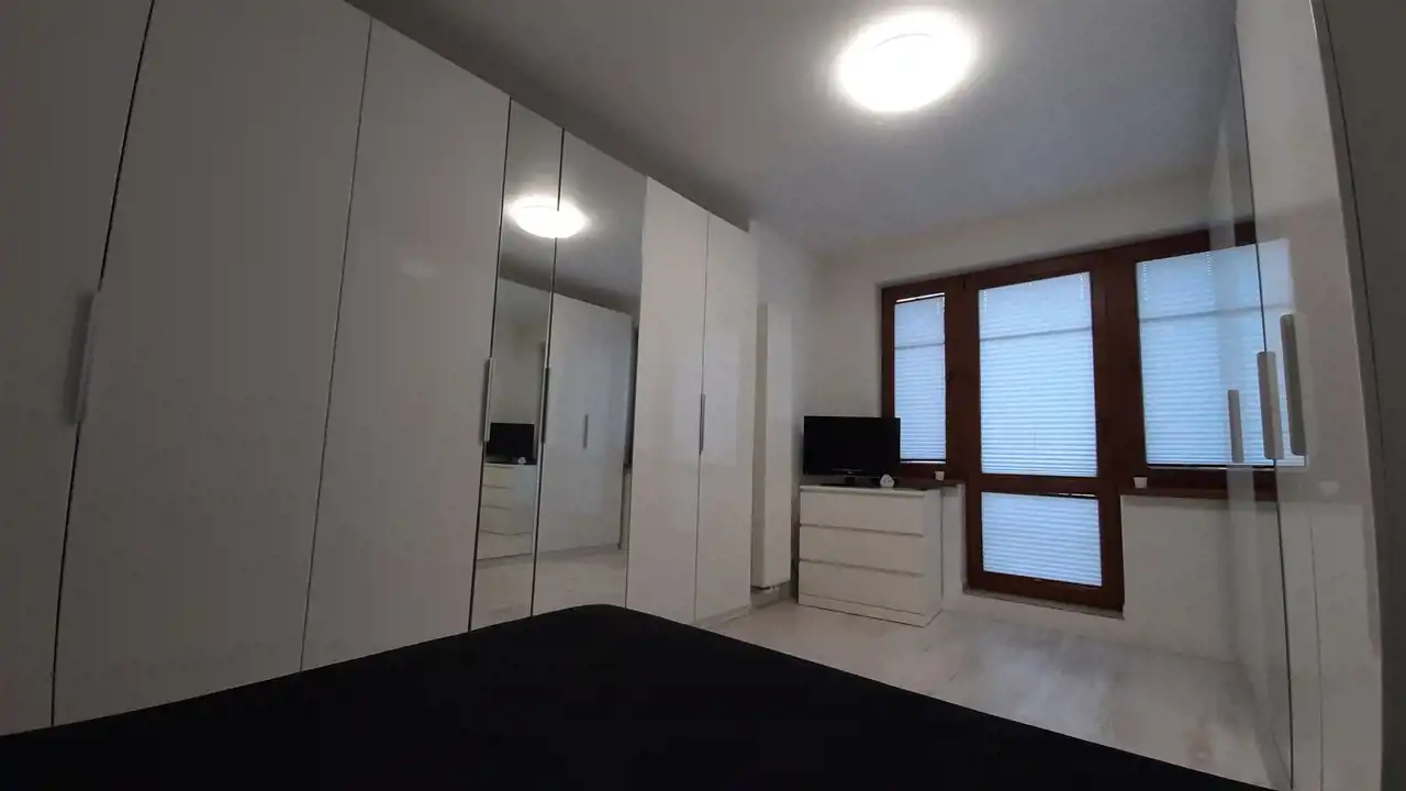 Pokój dzienny połączony z aneksem kuchennym w zabudowie, duża sypialnia z całym wyposażeniem, łazienka razem z WC oraz przedpokój.