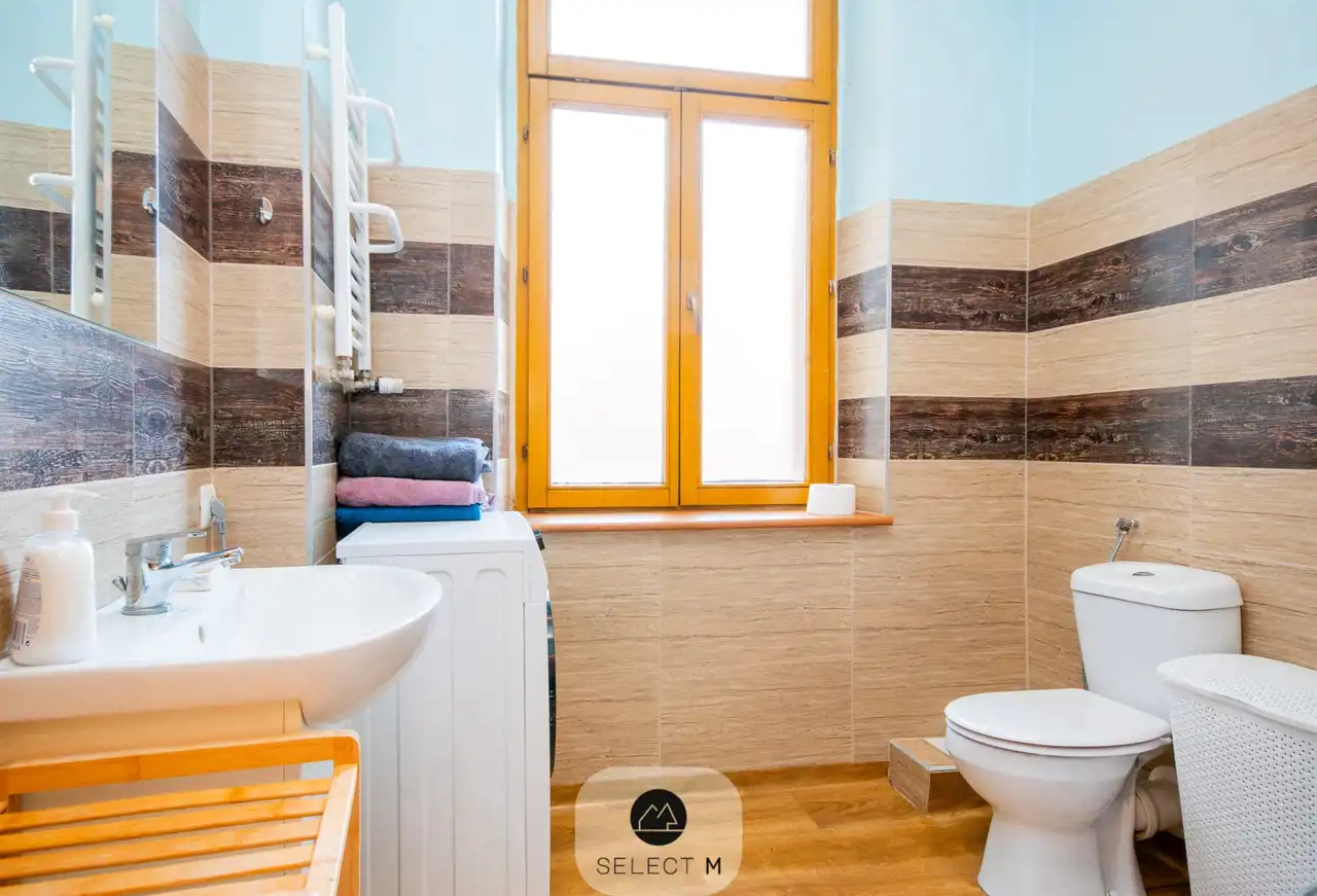 Mieszkanie znajduje się tuż przy starówce, dzięki czemu jest cicho i nie ma ruchu samochodowego — idealne dla rodzin z dziećmi.