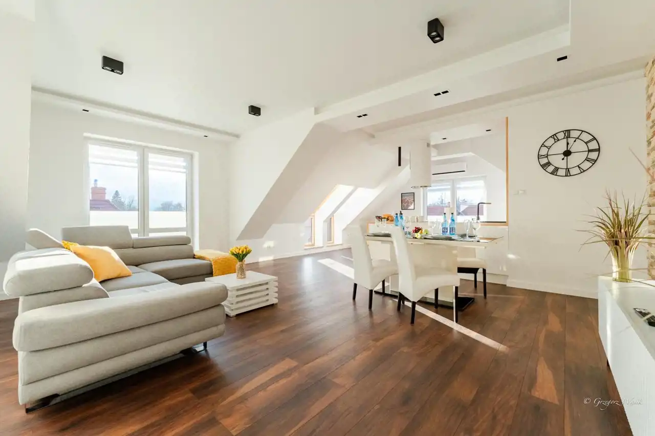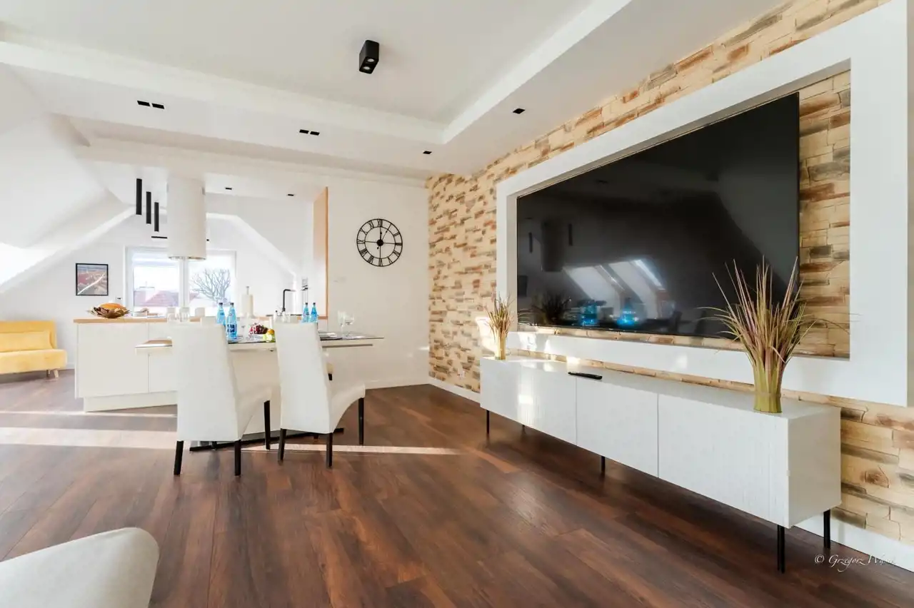 Odkryj wyjątkowy apartament klasy premium w sercu uzdrowiskowej części miasta, gdzie relaks spotyka się z elegancją. Ten w pełni wyposażony lokal o powierzchni 68m² zachwyca otwartą przestrzenią dzienną, łączącą nowoczesną kuchnię z jadalnią i salonem – idealną do przyjęć i codziennego komfortu.